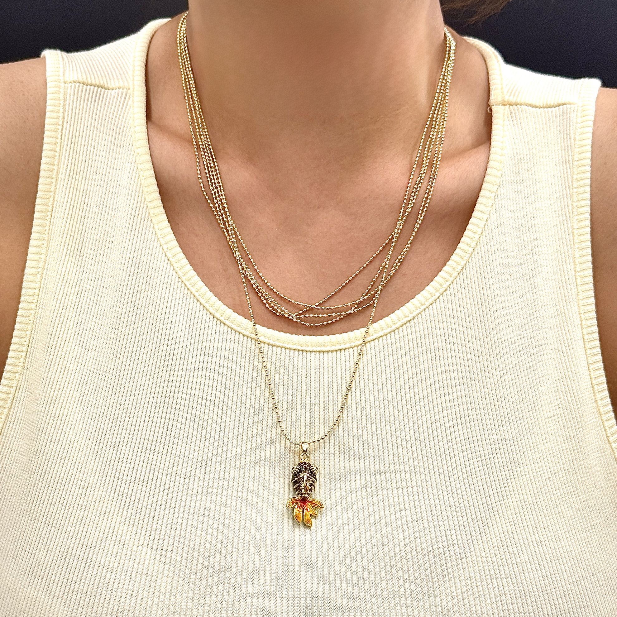 Çoklu Zincir Kombinli Sarı Balık Kolye