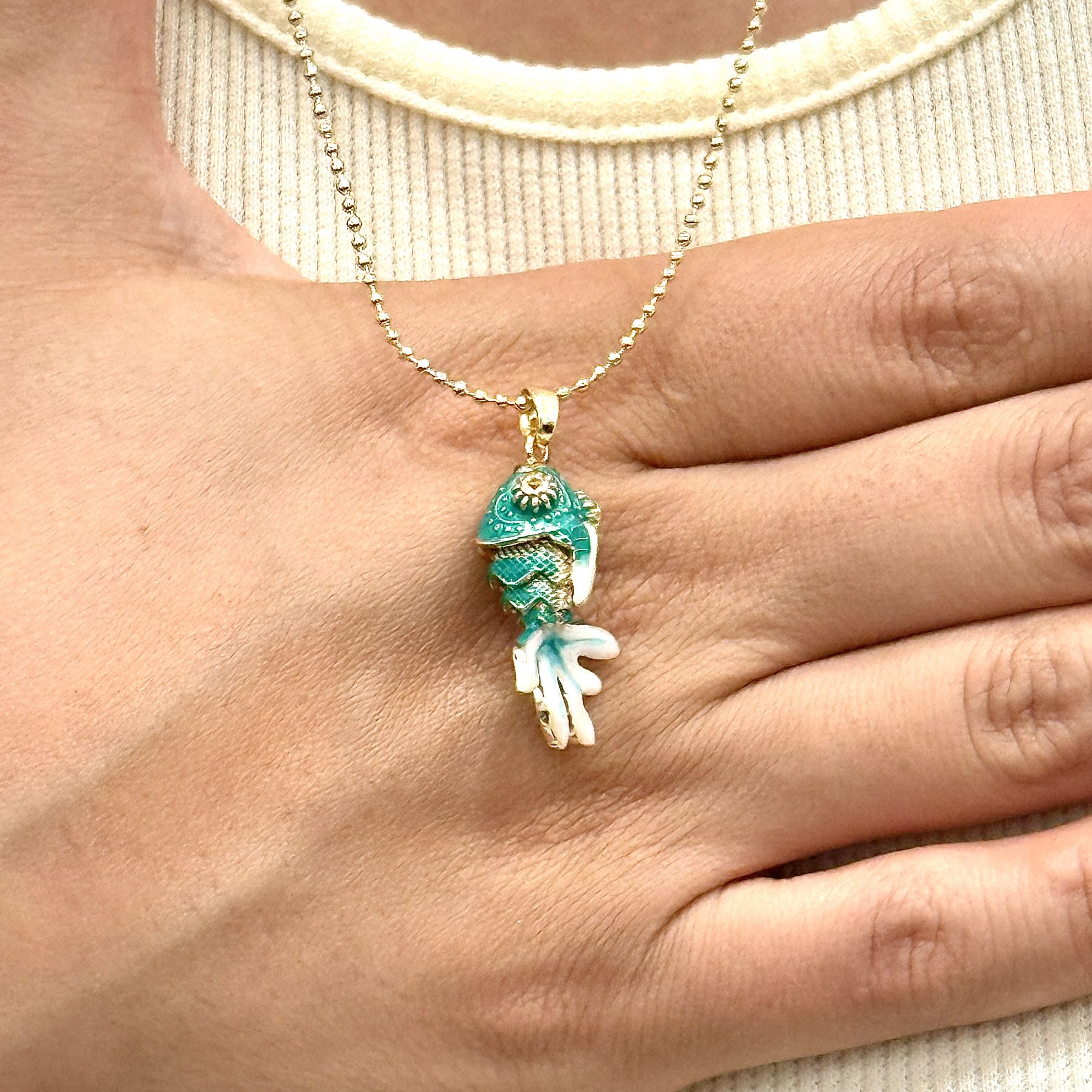 Çoklu Zincir Kombinli Yeşil Balık Kolye