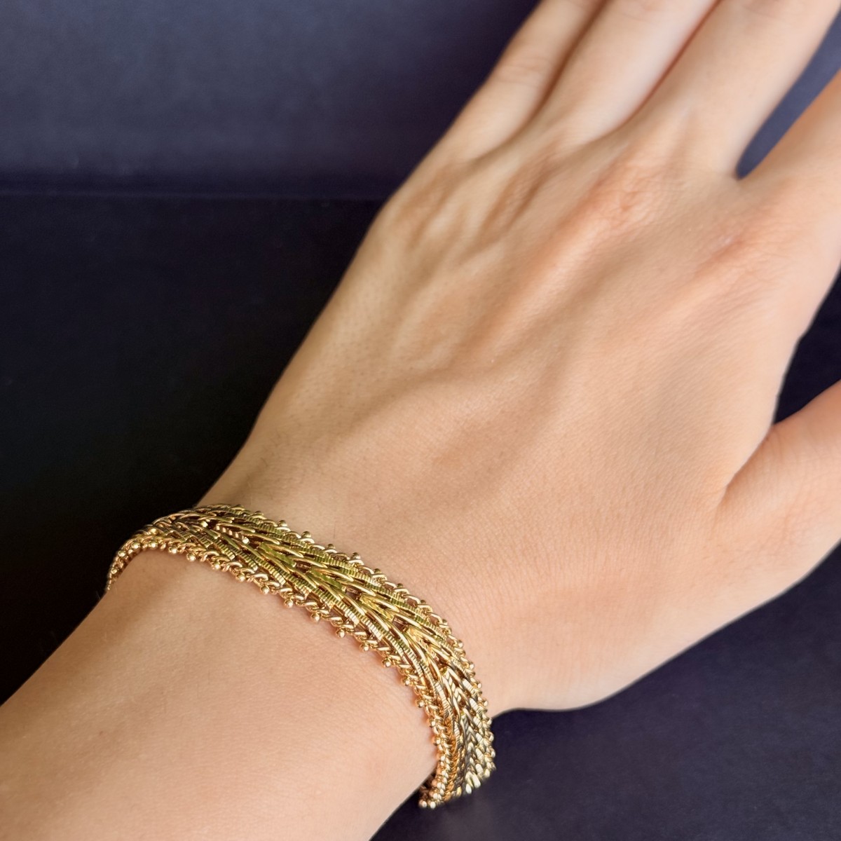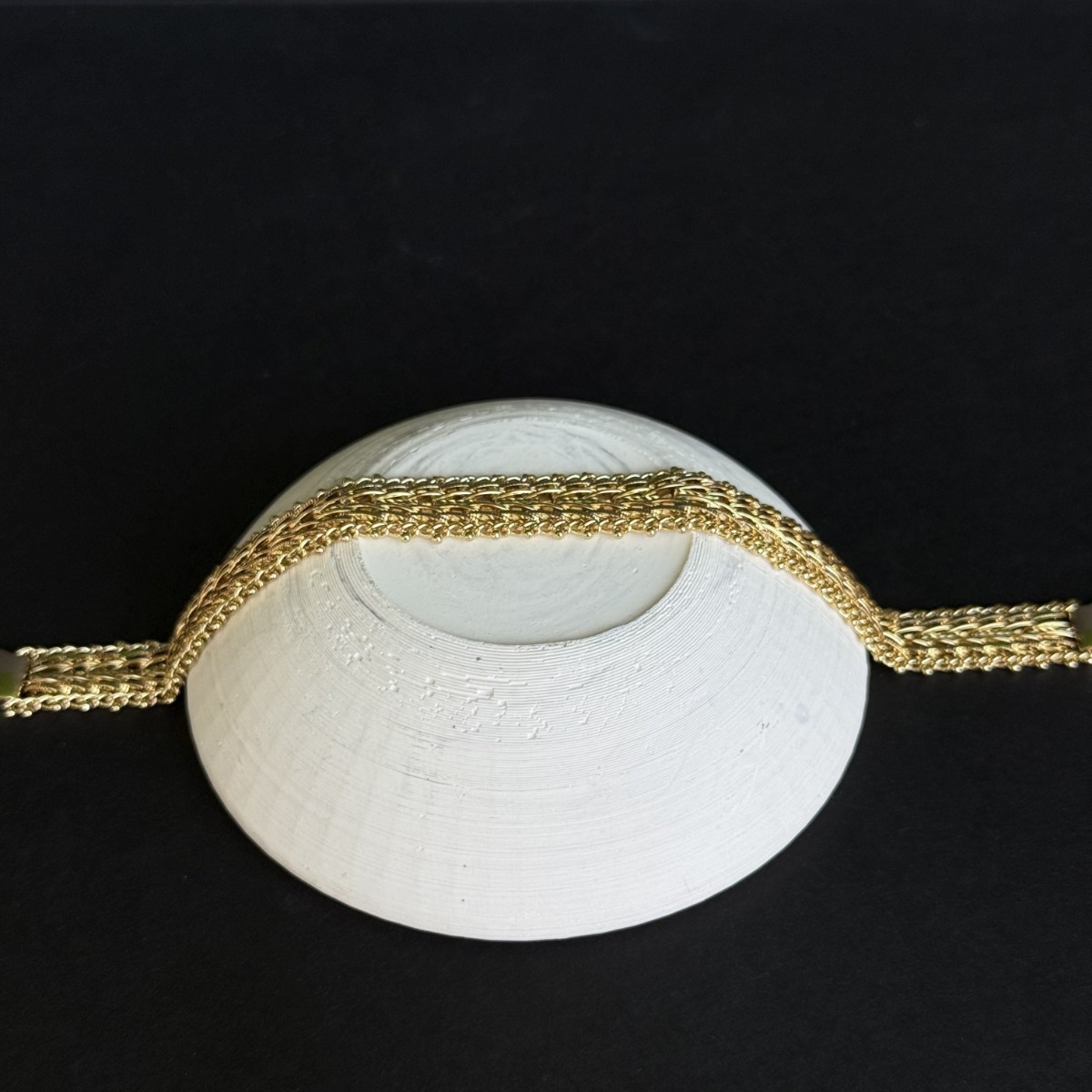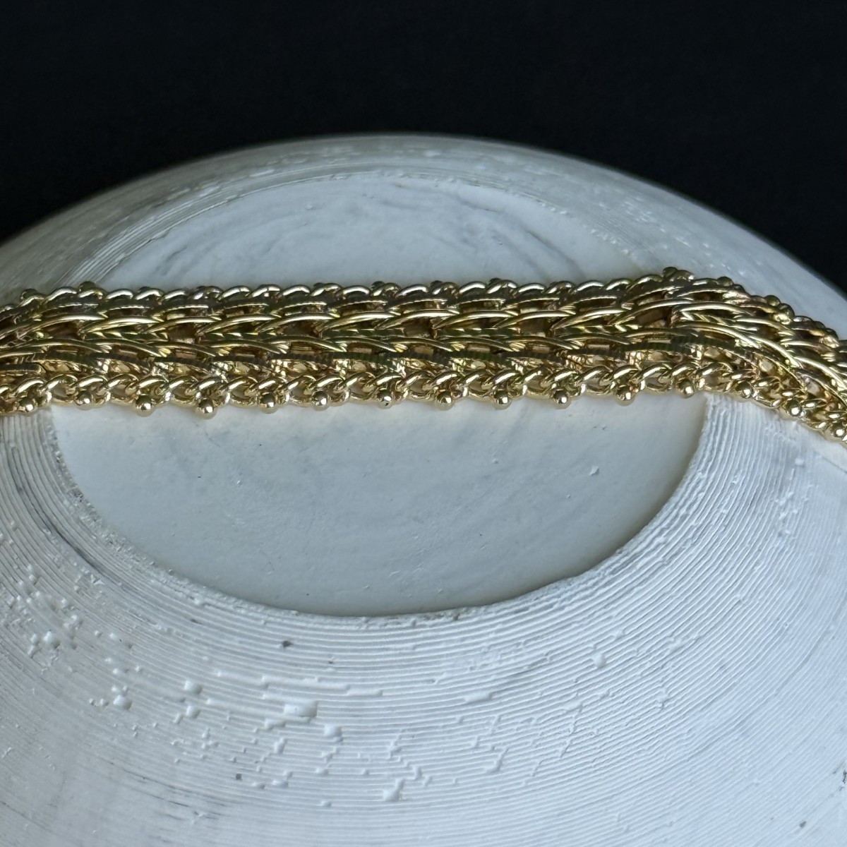Kalın örgü formunda, gösterişli ve klasik bir tasarım. Altın sevenler için zamansız bir parça.