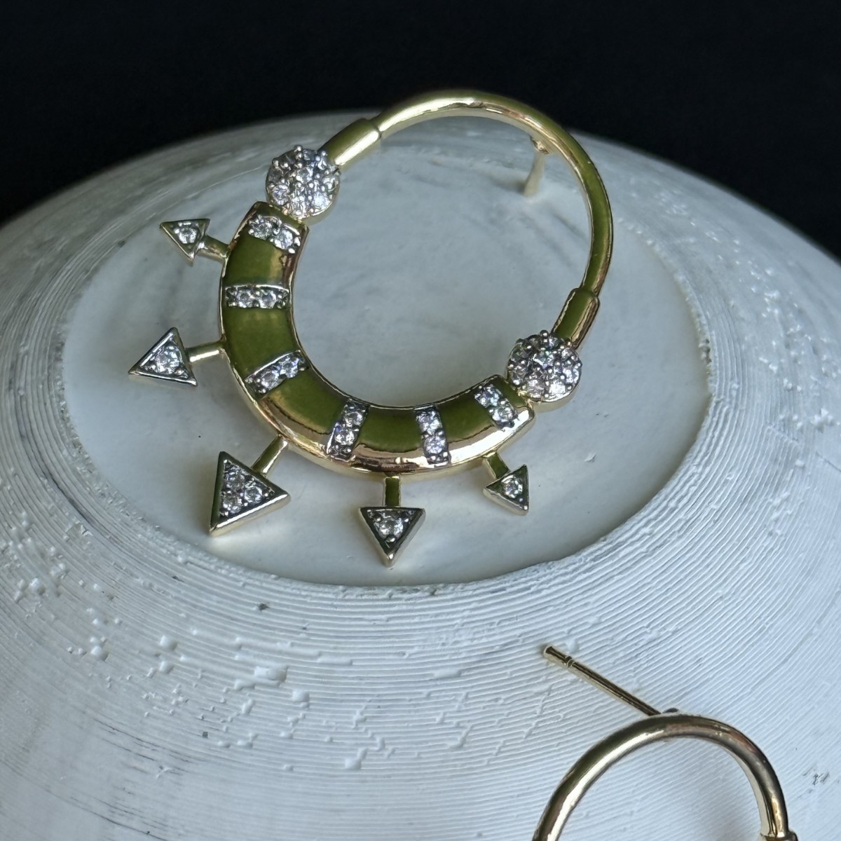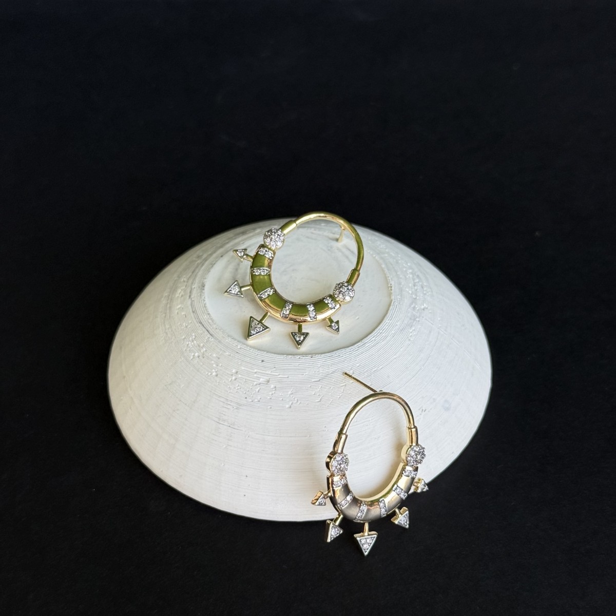Altın tonları, yeşil emaye detaylar ve üçgen taş süslemeleriyle modern ve enerjik bir görünüm sunuyor. Günlük şıklığı farklılaştırmak isteyenler için tasarlandı.