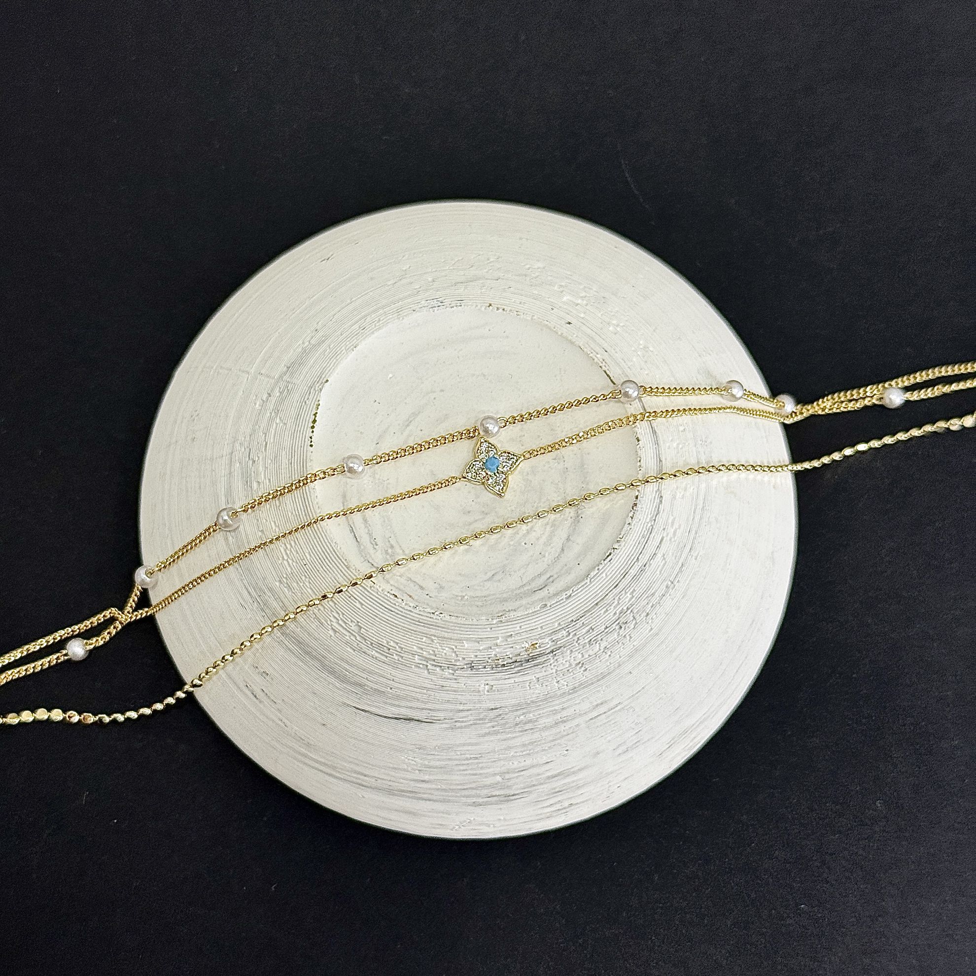 Üçlü Mavi Taş Detay İnci Halhal