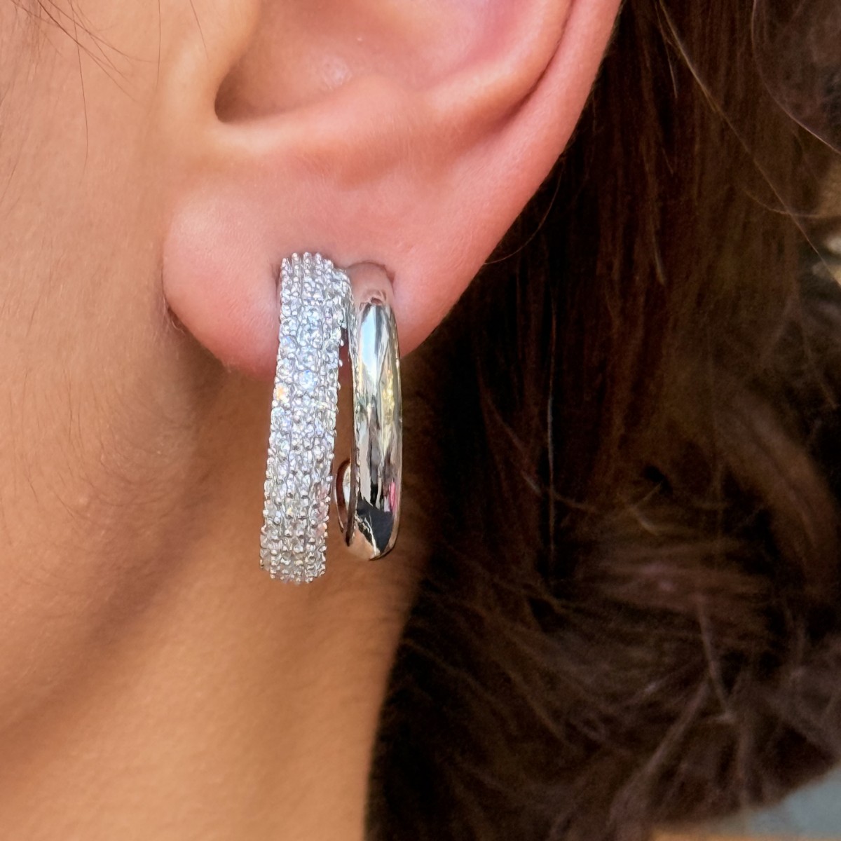 Biri tamamen taşlarla parlayan, diğeri ayna parlaklığında sade form… Bu ikili halka tasarımı kontrastıyla dikkat çeker.