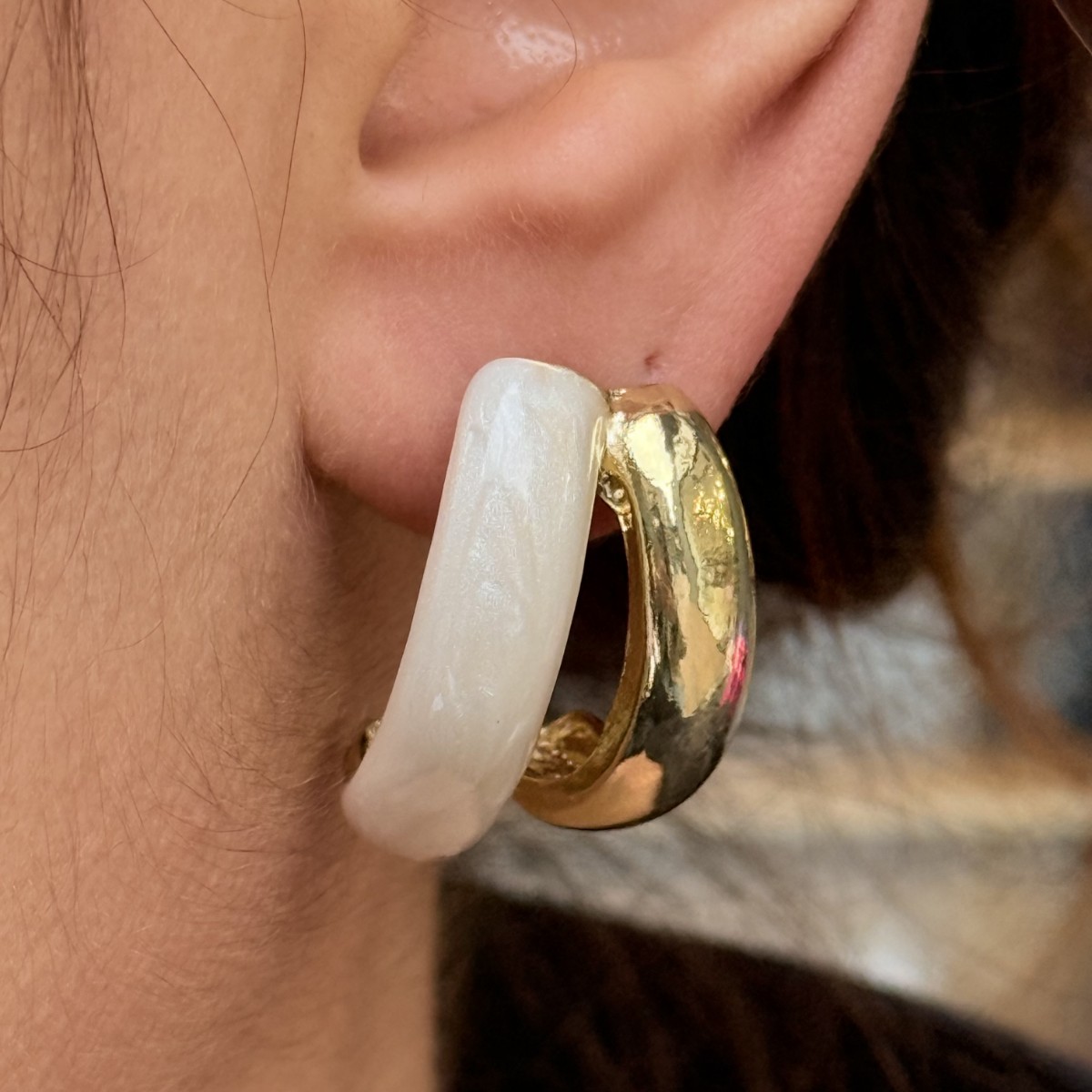 🌸 Nude-Gold Halkalı Küpe