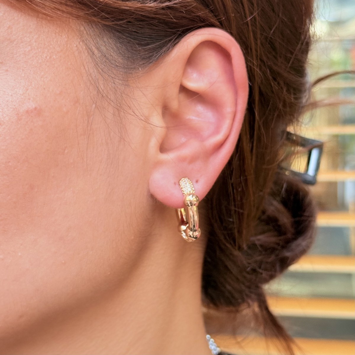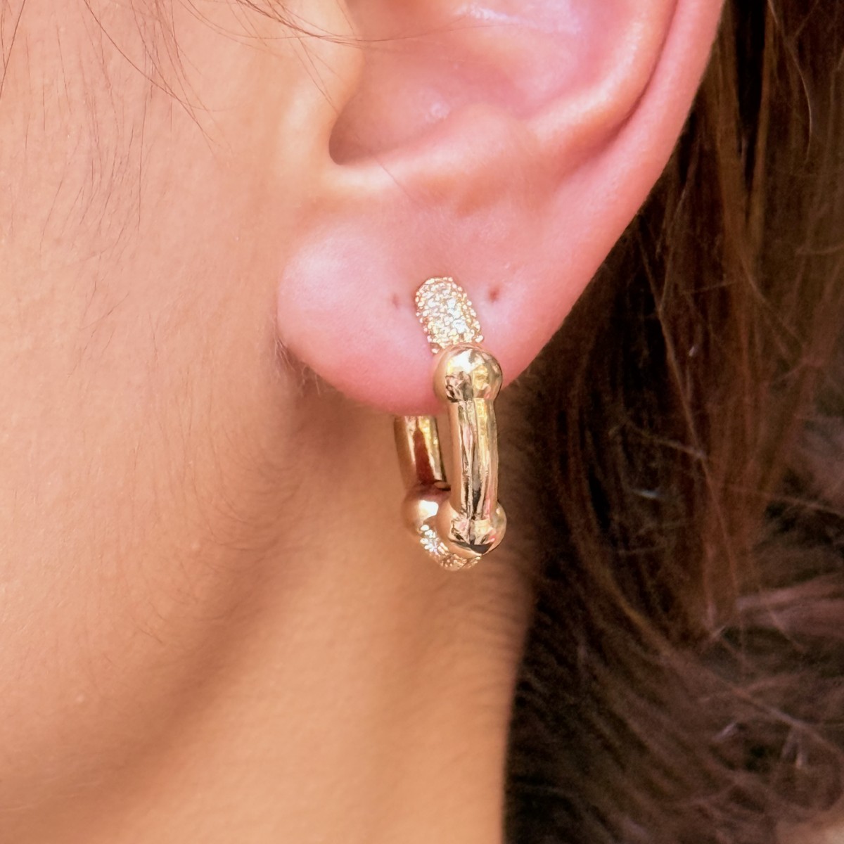 Altın ve taş detaylı zincir halka.