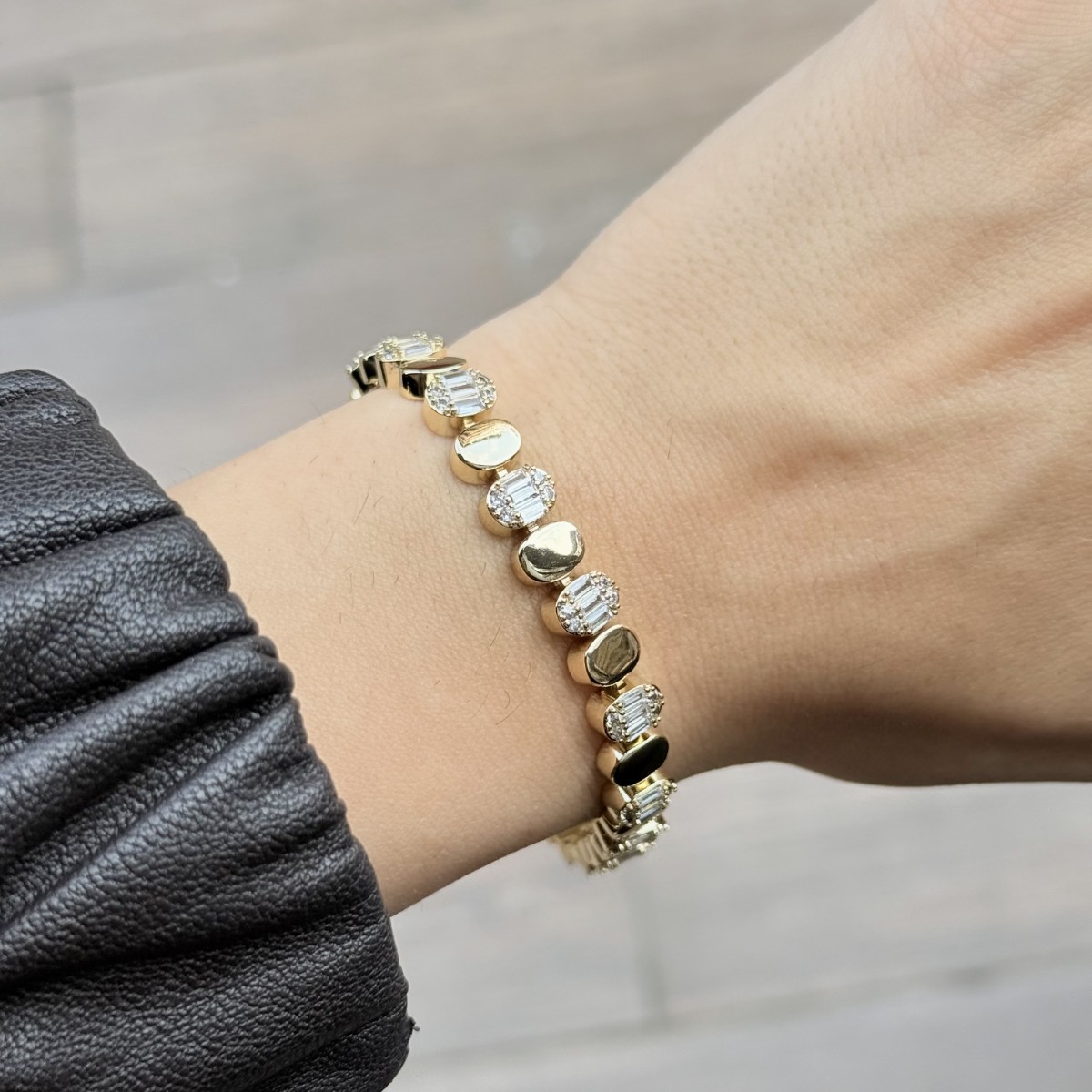 Baget ve oval taş kombinasyonlu zarif bileklik.