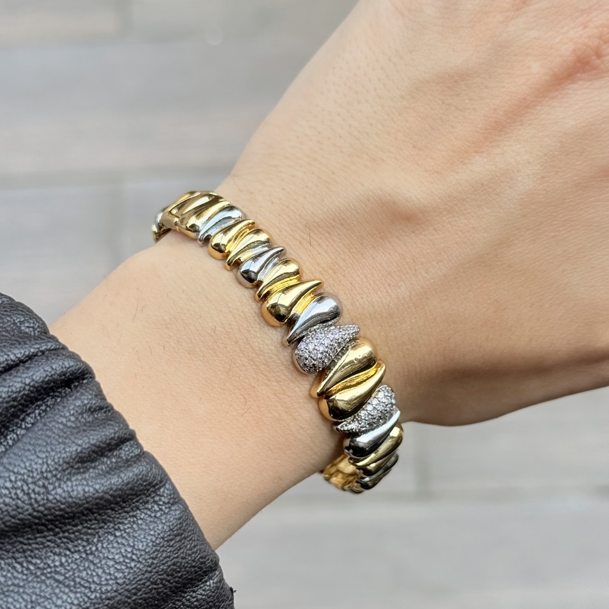 Organik formlu gövde ve mikro taş detaylarıyla dikkat çeken bar bileklik.