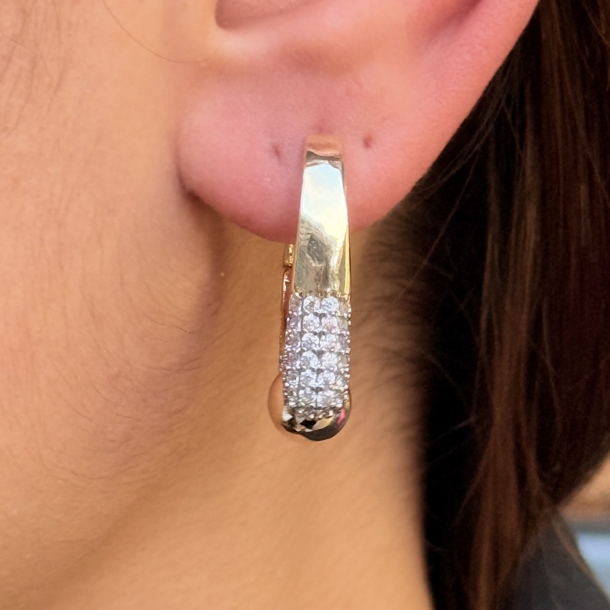 Bilye Detaylı Pavé Halka Küpe – Gold İki Renk