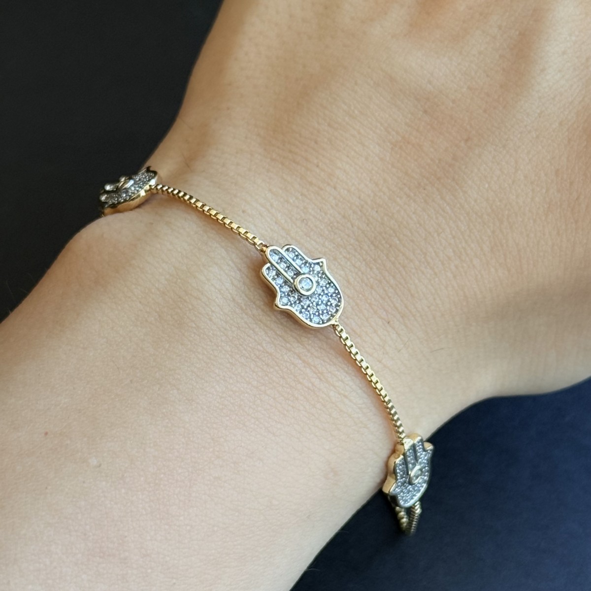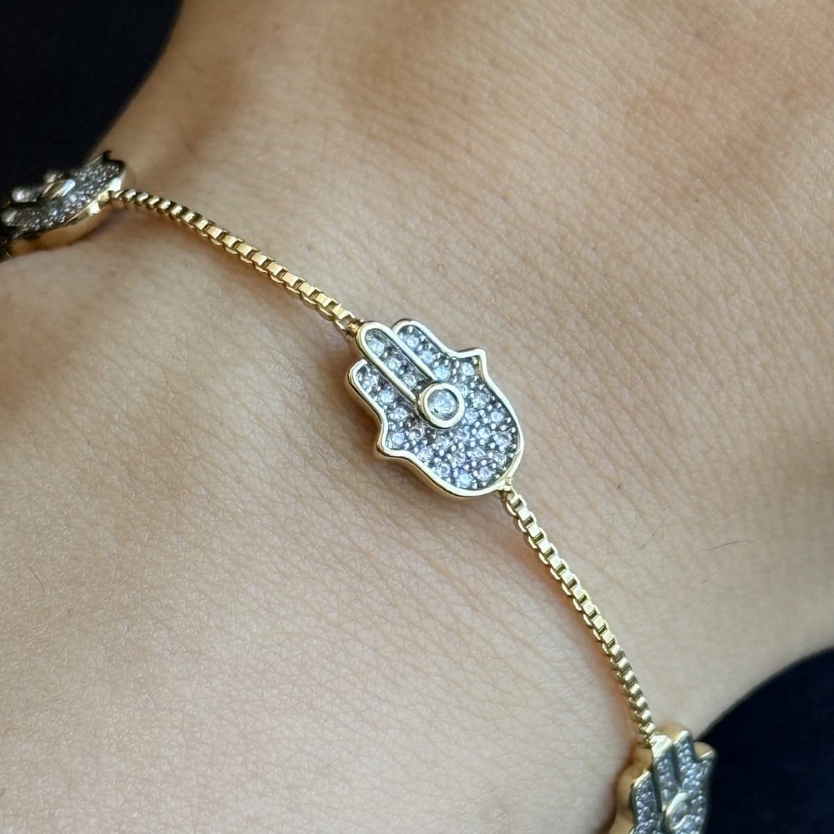 Kadim bir koruma sembolü olan Fatma Ana Eli, zarif tasarımıyla bileğinizde hayat buluyor. Hem şıklık hem de anlam taşıyan bu özel bileklik, her anınıza huzur ve güven katacak. Altın dokunuşu ile günlük şıklığınızı tamamlayan bu künye bileklik, geleneksel sembolizmi modern bir tarzla buluşturuyor.