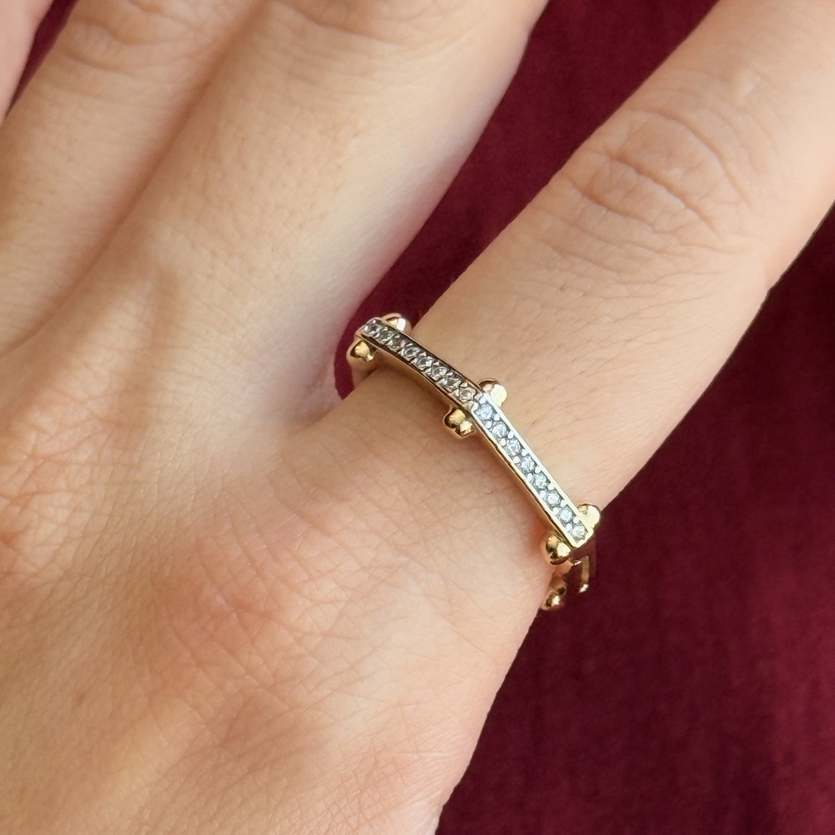 Gümüş Taşlı, Gold Detaylı Yüzük: Işıltılı Denge