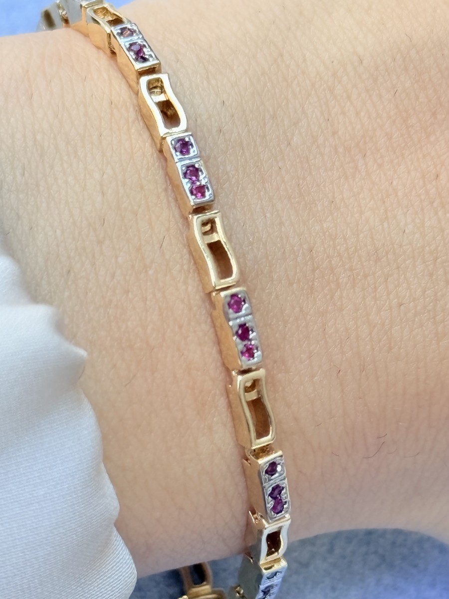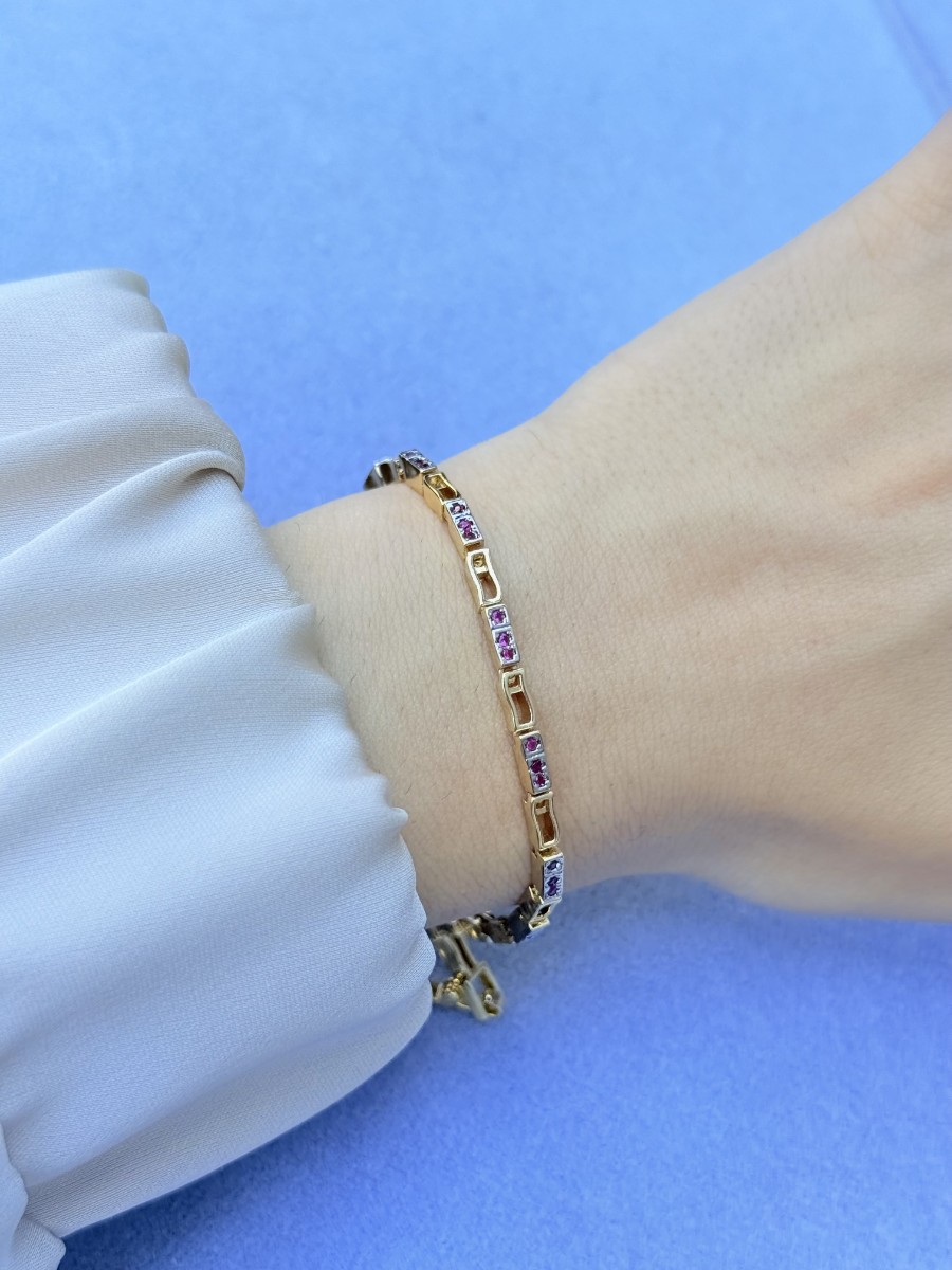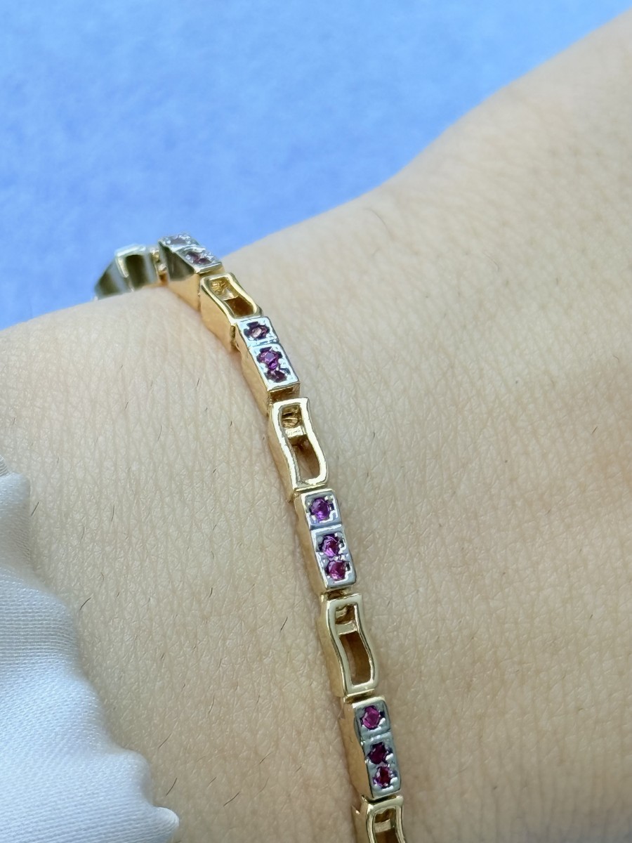 Baget kesim ve yuvarlak taşların altın formda birleşimi. Işıltılı, modern bir görünüm için.