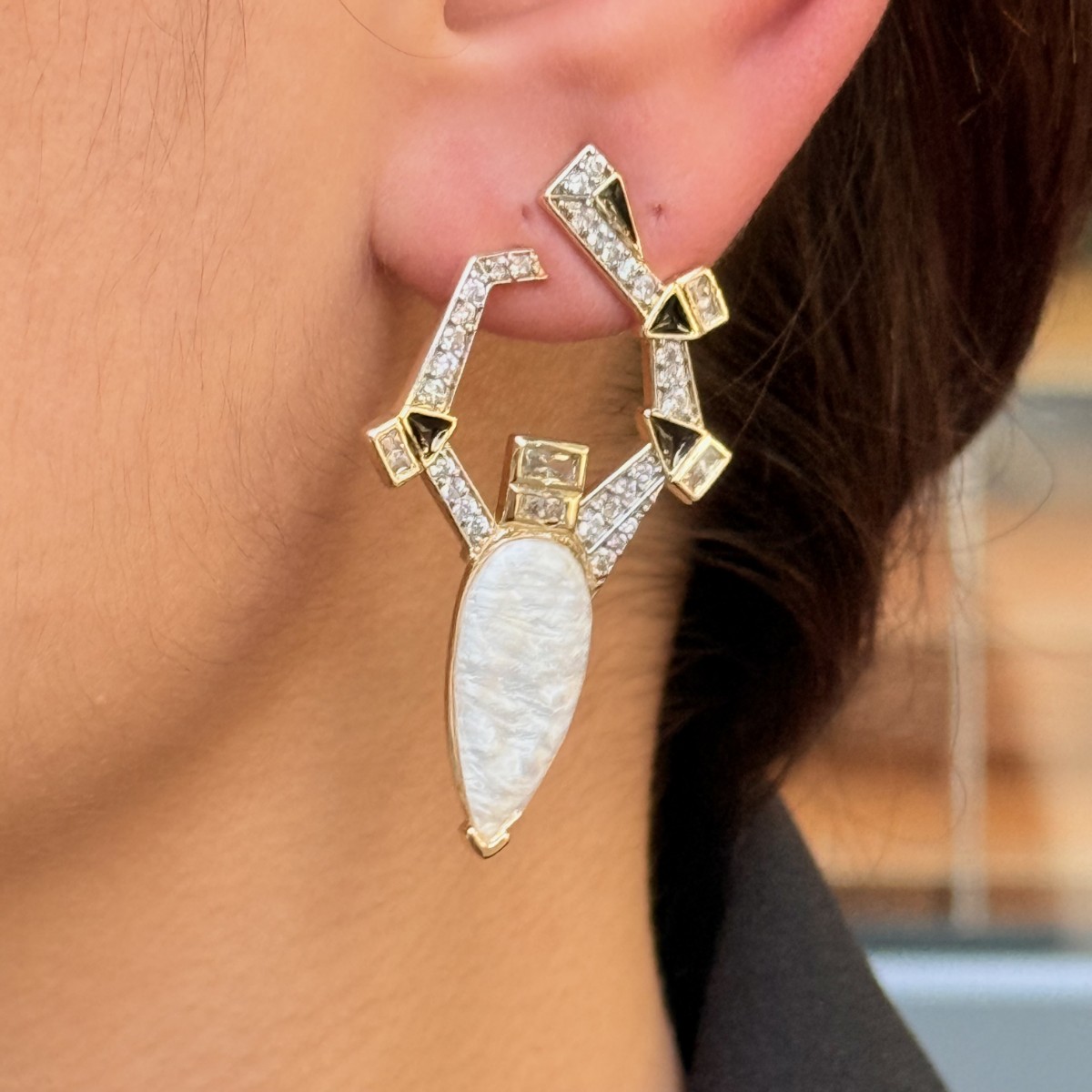 Geometrik Sedef Taşlı Statement Küpe – Gold