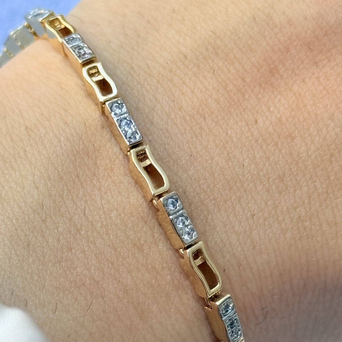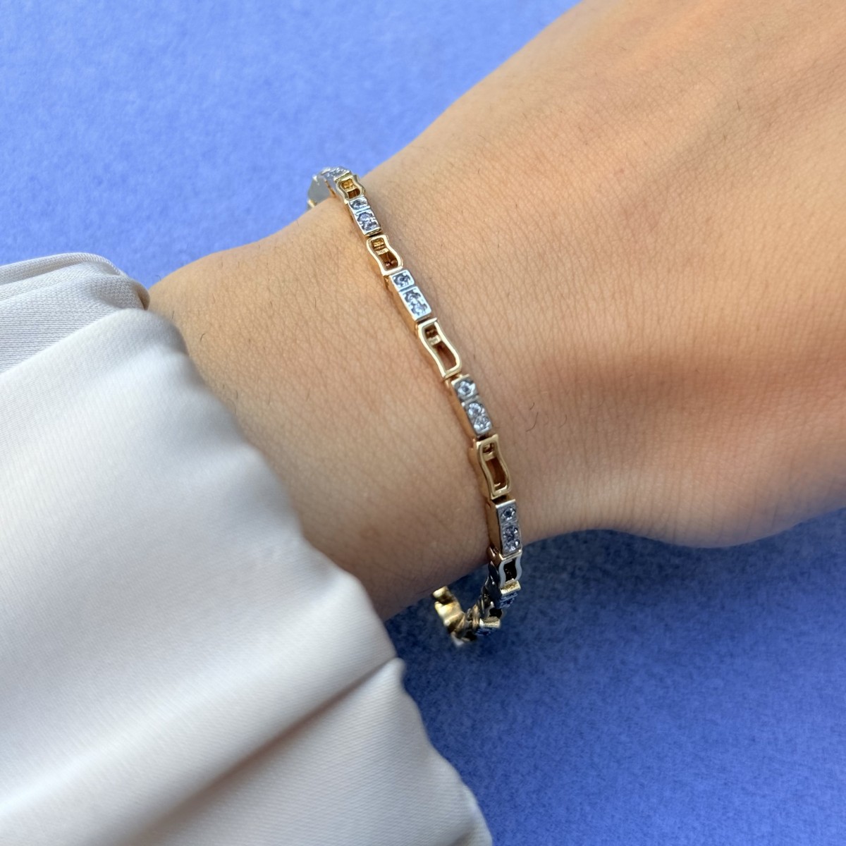 Modern geometrik formlar ve parlak taşlarla göz alıcı bir görünüm.
