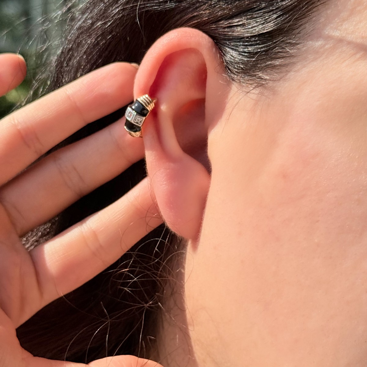 Üçüncü modelin siyah renkteki versiyonu. Modern ve minimalist kombinler için ideal. Aynı modelin altın ve gümüş uyumu, asimetrik takımlarda farklı bir hava katıyor.