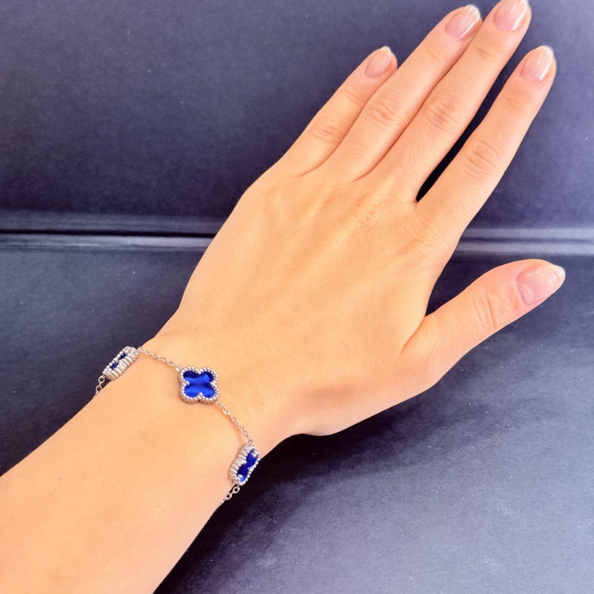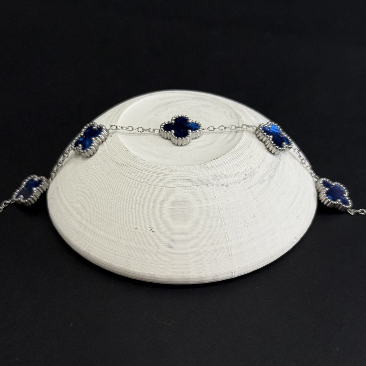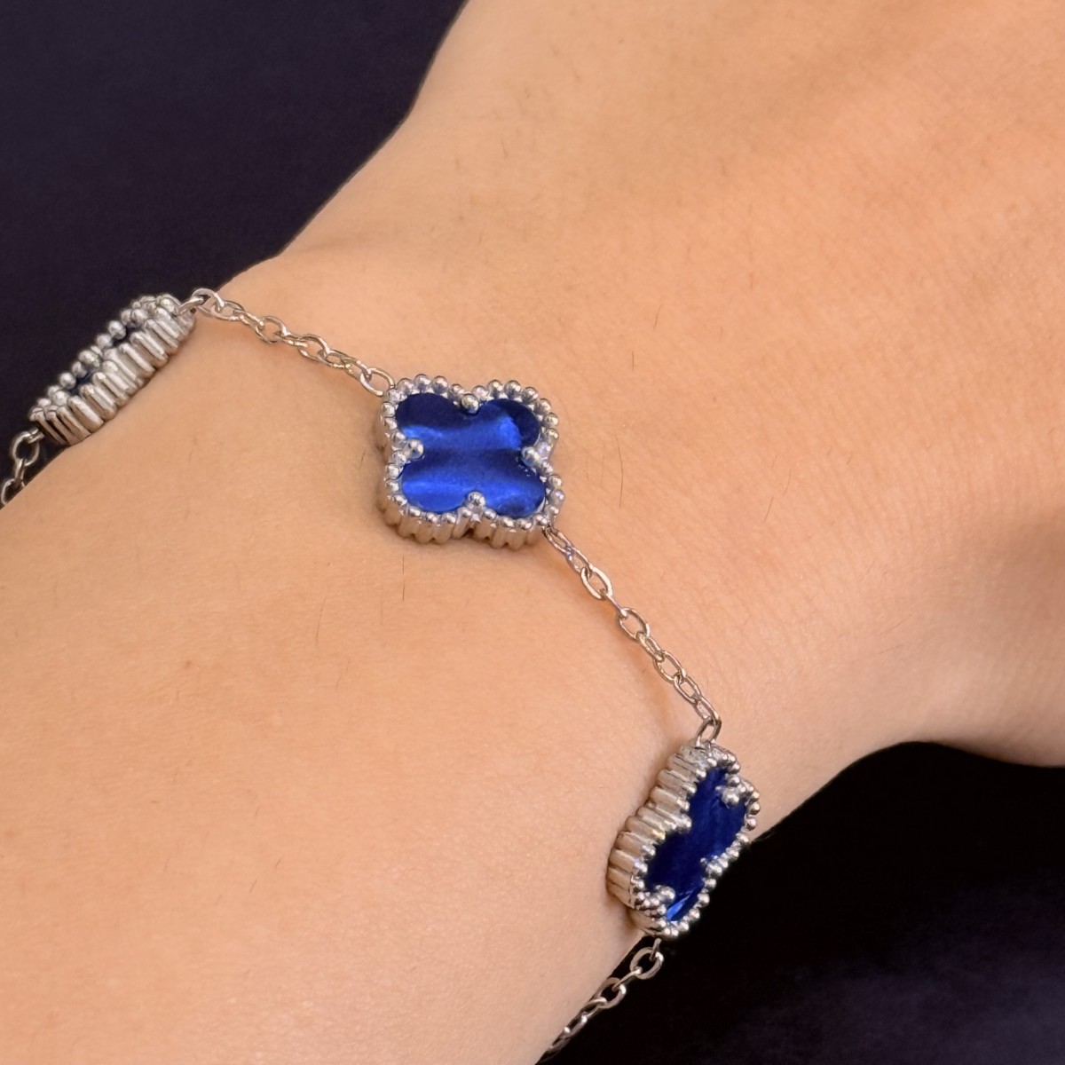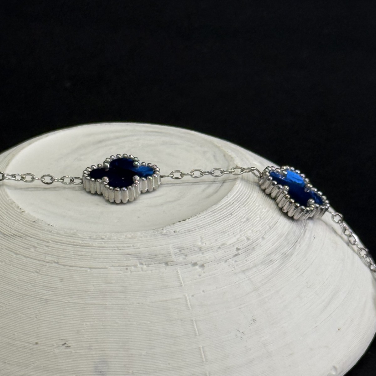 Lacivert Dört Yapraklı Taşlı Bileklik Çelik