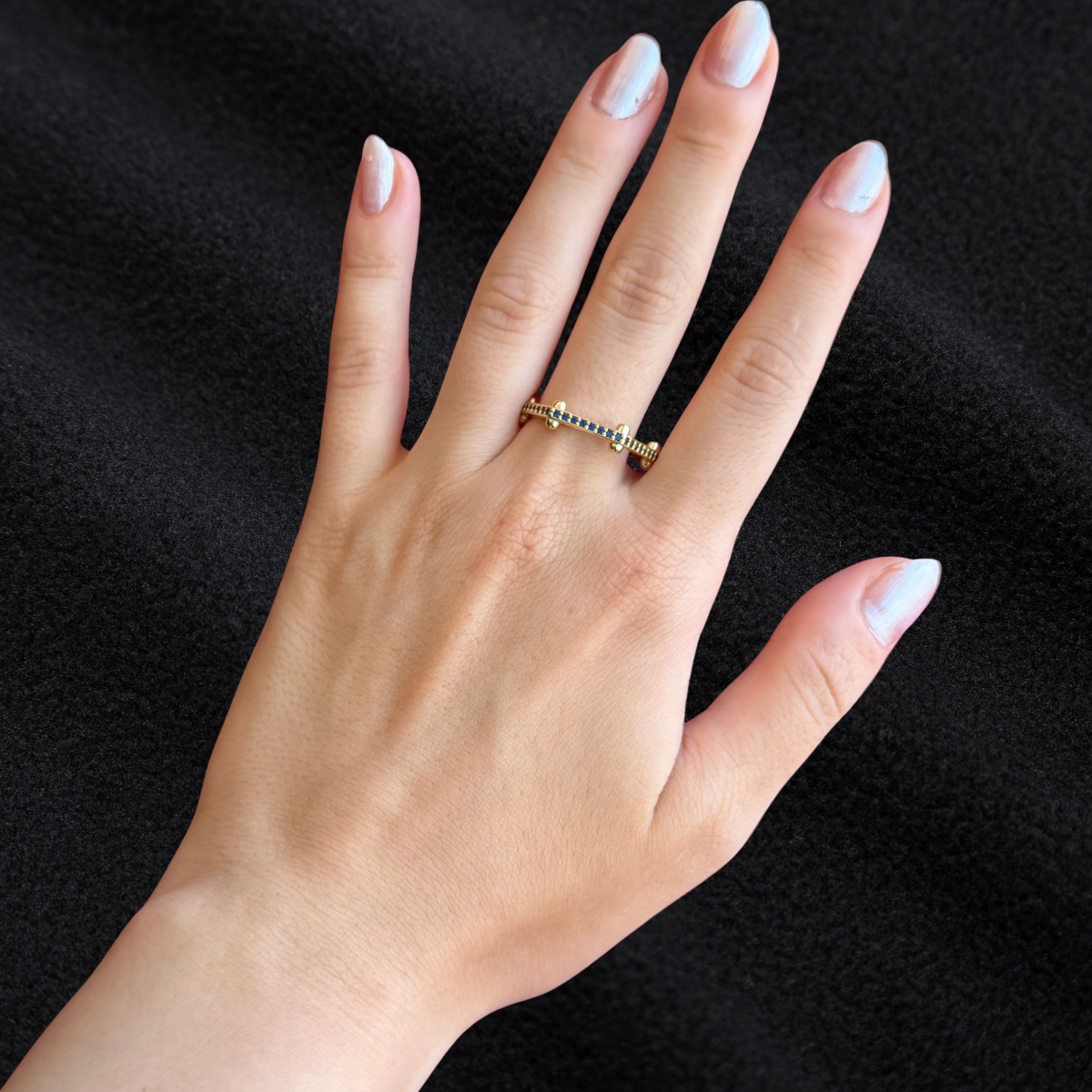 Lacivert taşın derin mavisiyle tasarlanmış bu yüzük, zarif ve sofistike bir dokunuş sunar. Taşın özgün ışıltısı, gece gökyüzündeki yıldızları andırırken, her anınıza şıklık ve zarafet katıyor. Modern ve klasik çizgilerin buluştuğu bu tasarım, göz alıcı detaylarıyla dikkatleri üzerine çekiyor.