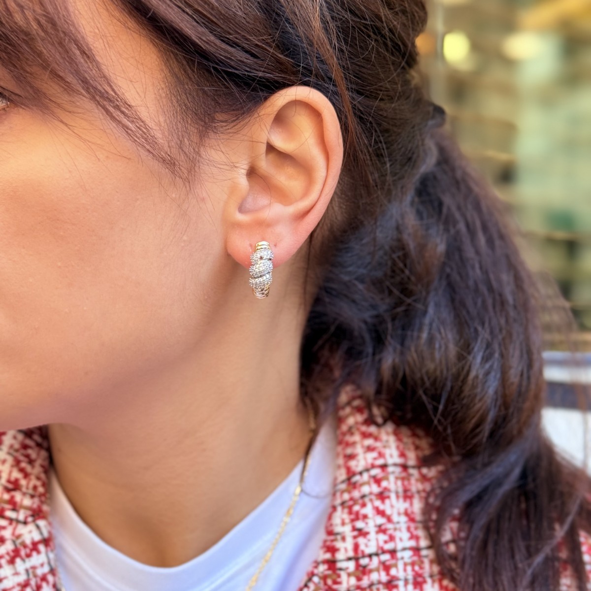Geometrik örgü formu ve taş detaylarıyla sofistike bir duruş.