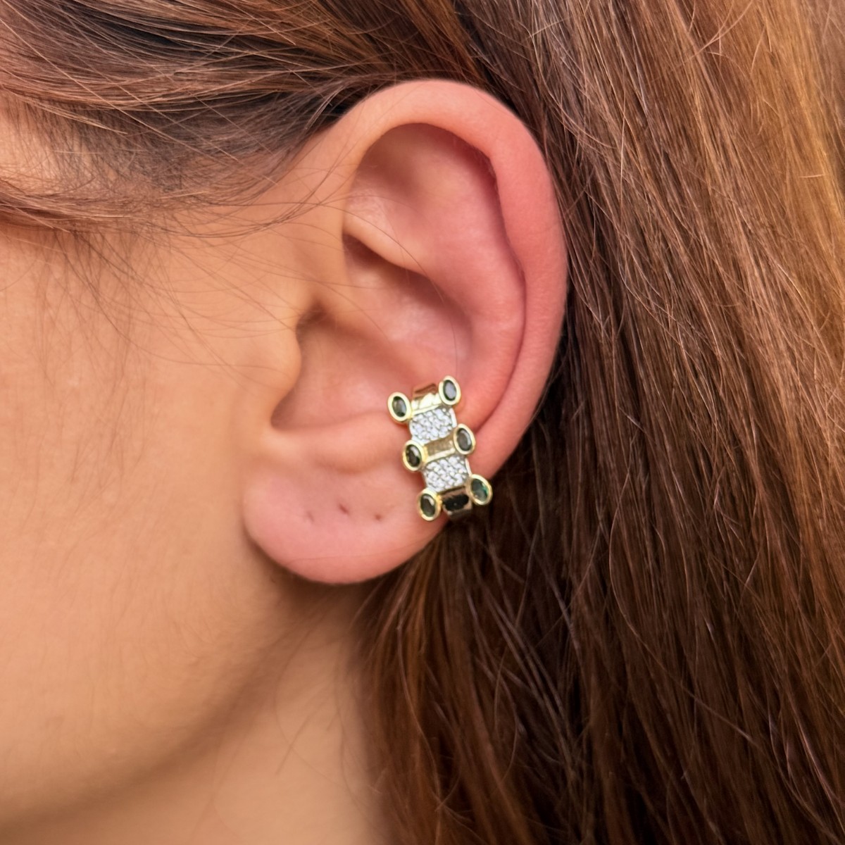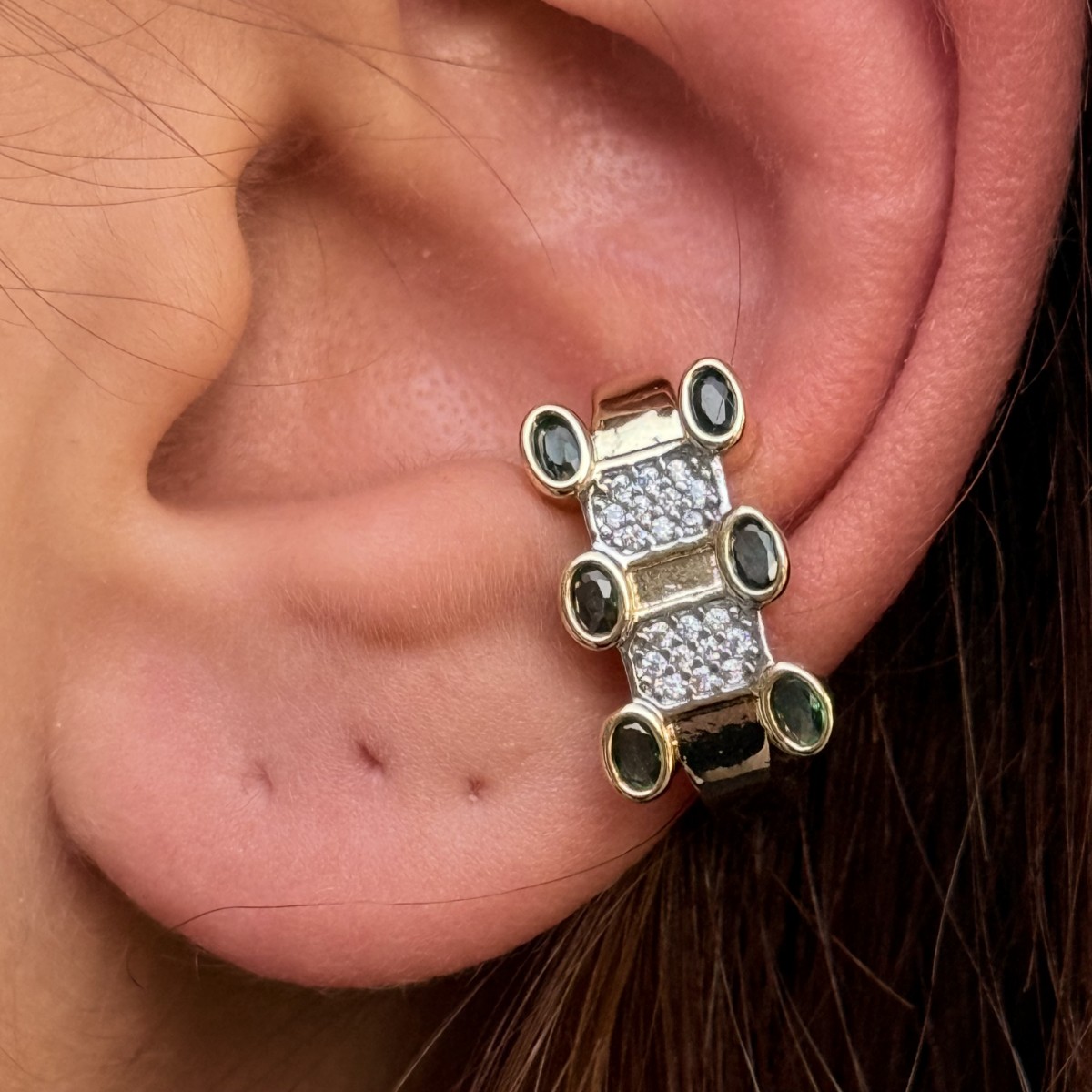 Markiz taşlı çiçek formlu kıkırdak cuff, gümüş.