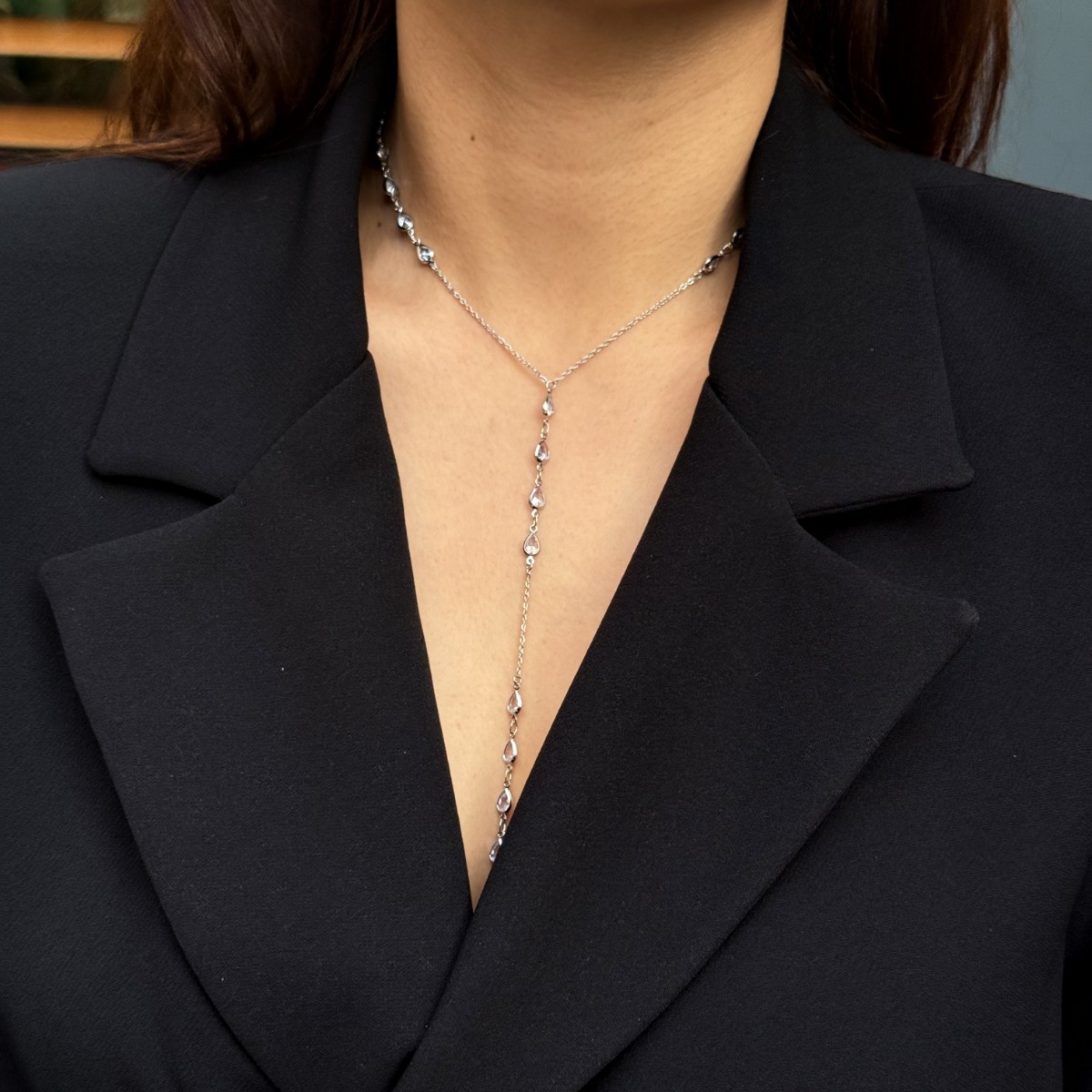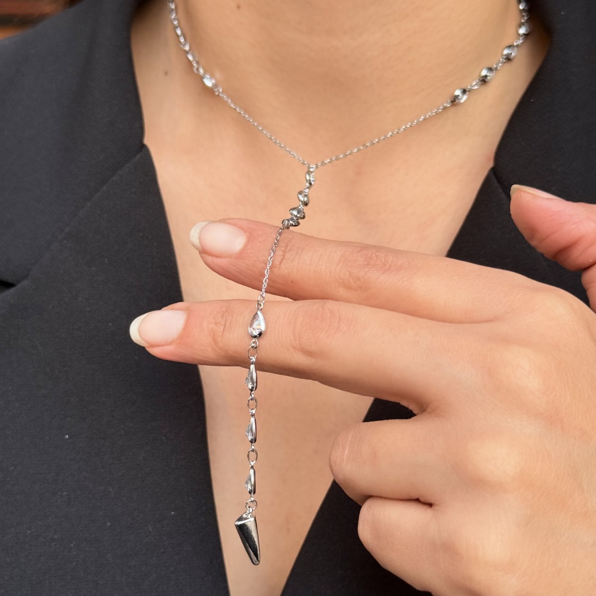 Mercury Drip Lariat Necklace – Silver
