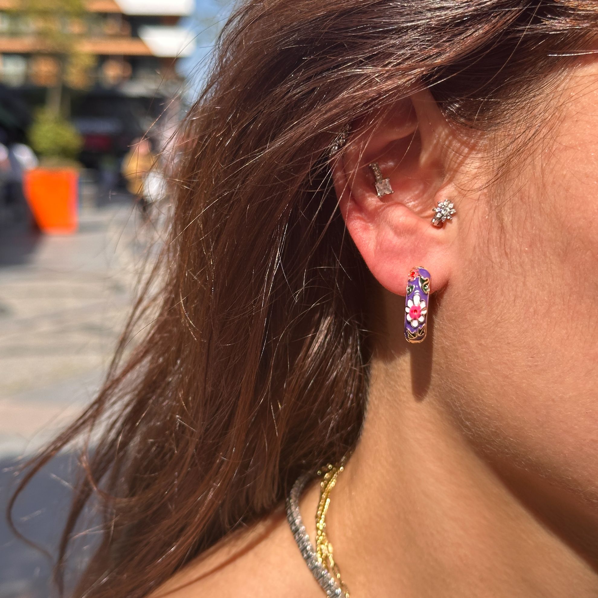 Mineli Çiçek Küpe Mor