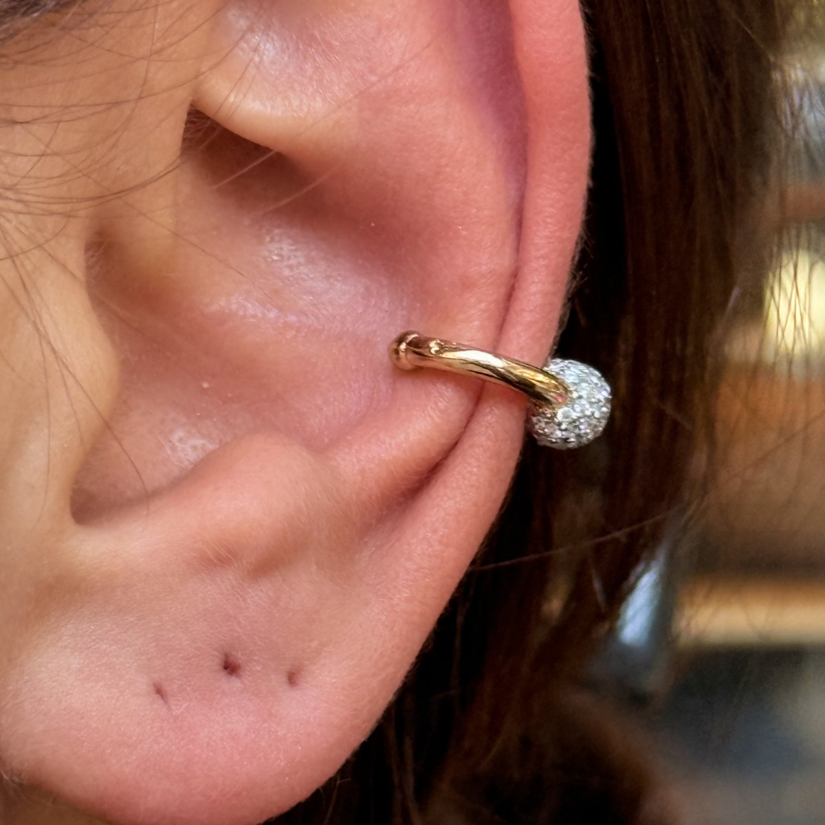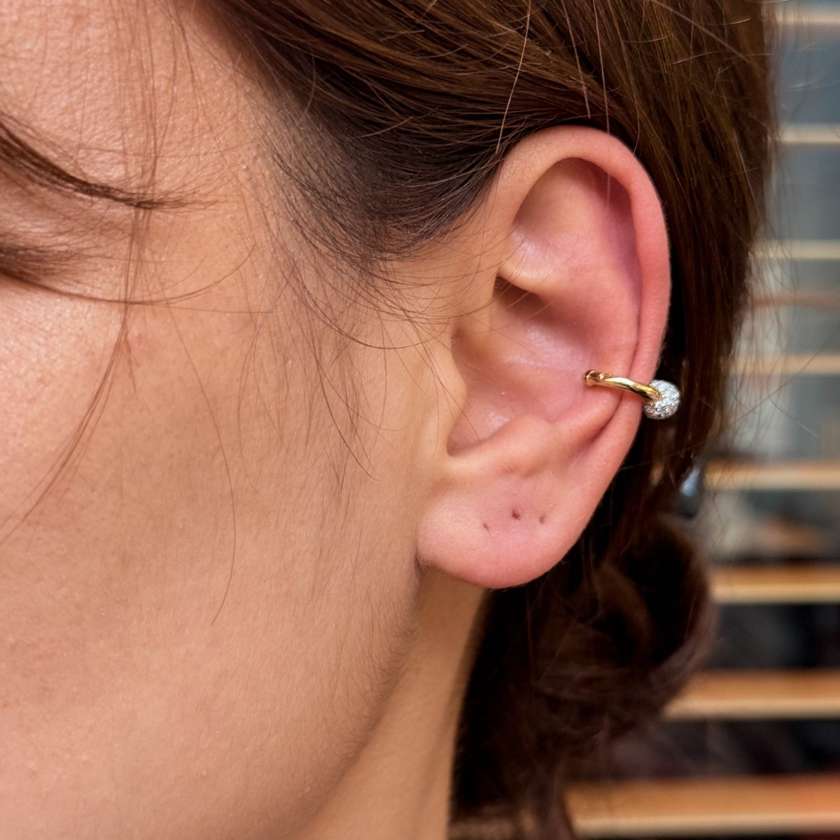 Altın tonlu zarif halka, taşlı detayla modern ve sade bir parıltı sunar. Günlük şıklığınızı tamamlayan minimal bir dokunuş.