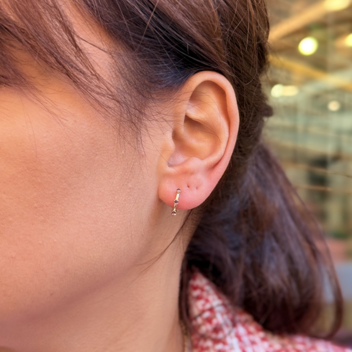 Gold – pembe taşlı ince ve zarif halka.