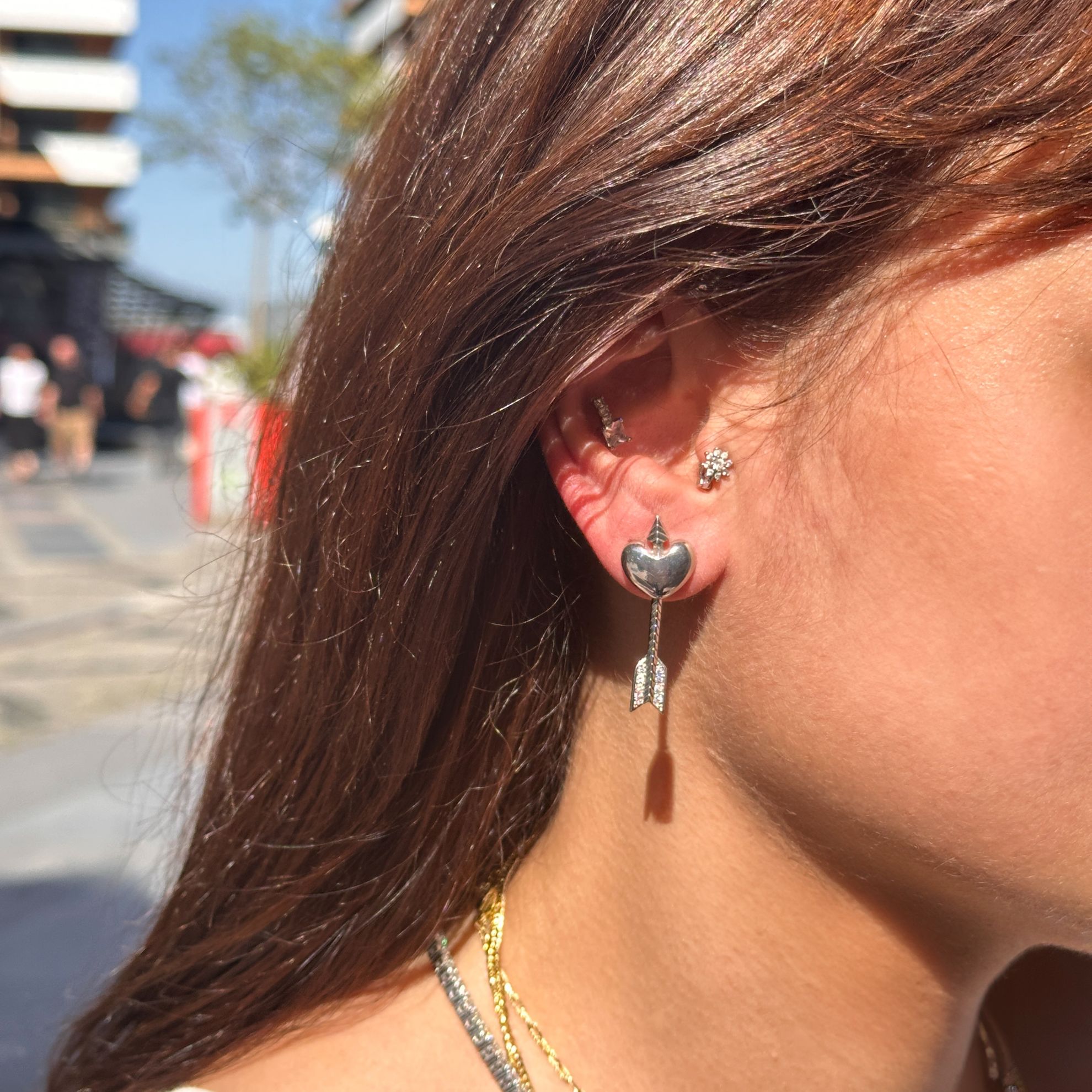 Ok Saplanmış Kalp Küpe Silver