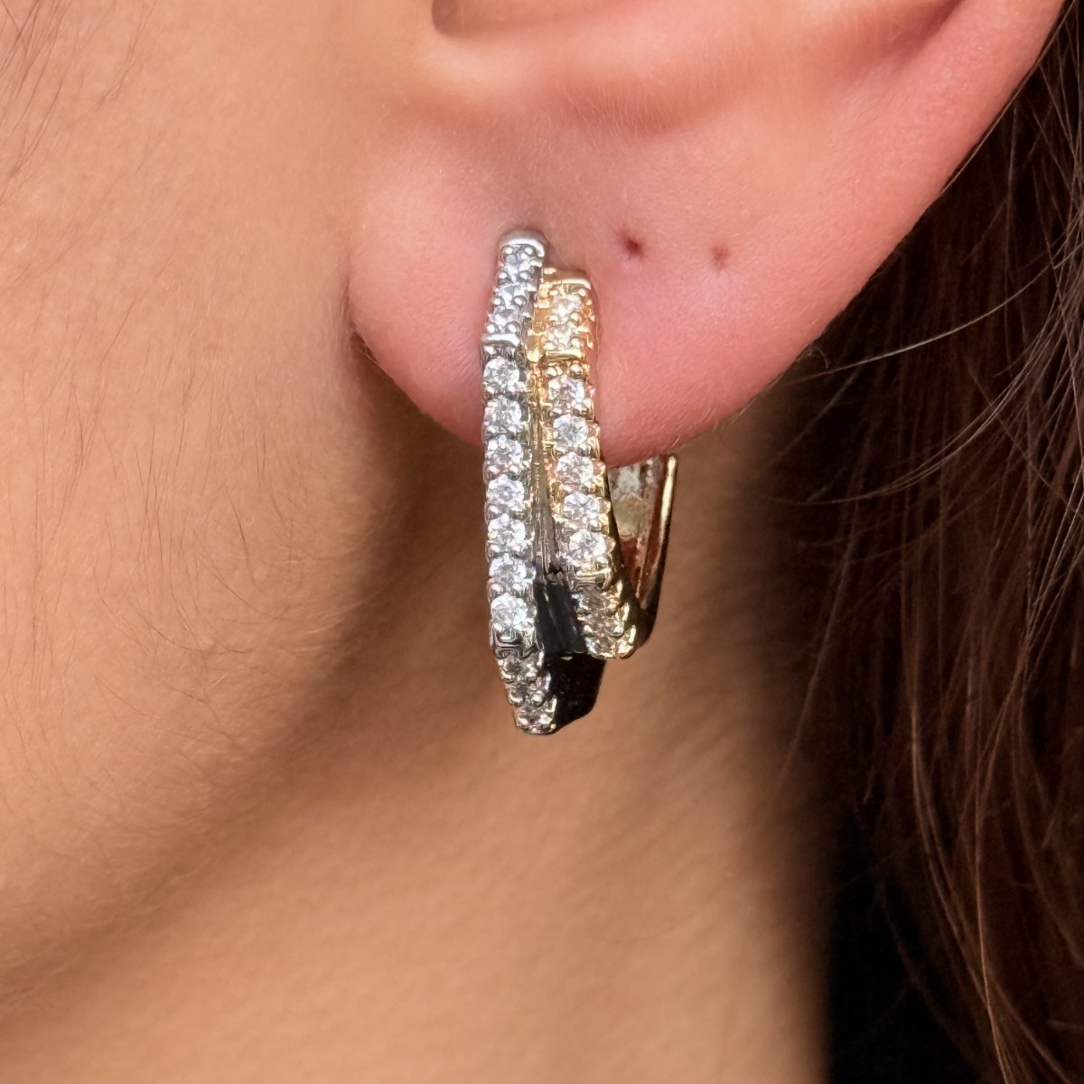 İki parçalı miktaşlı form: biri düz parlak, diğeri tam pavé çizgi. Modern ve hacimli halka görünümü.