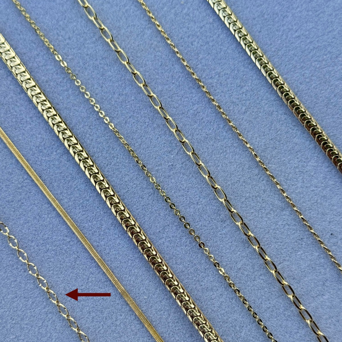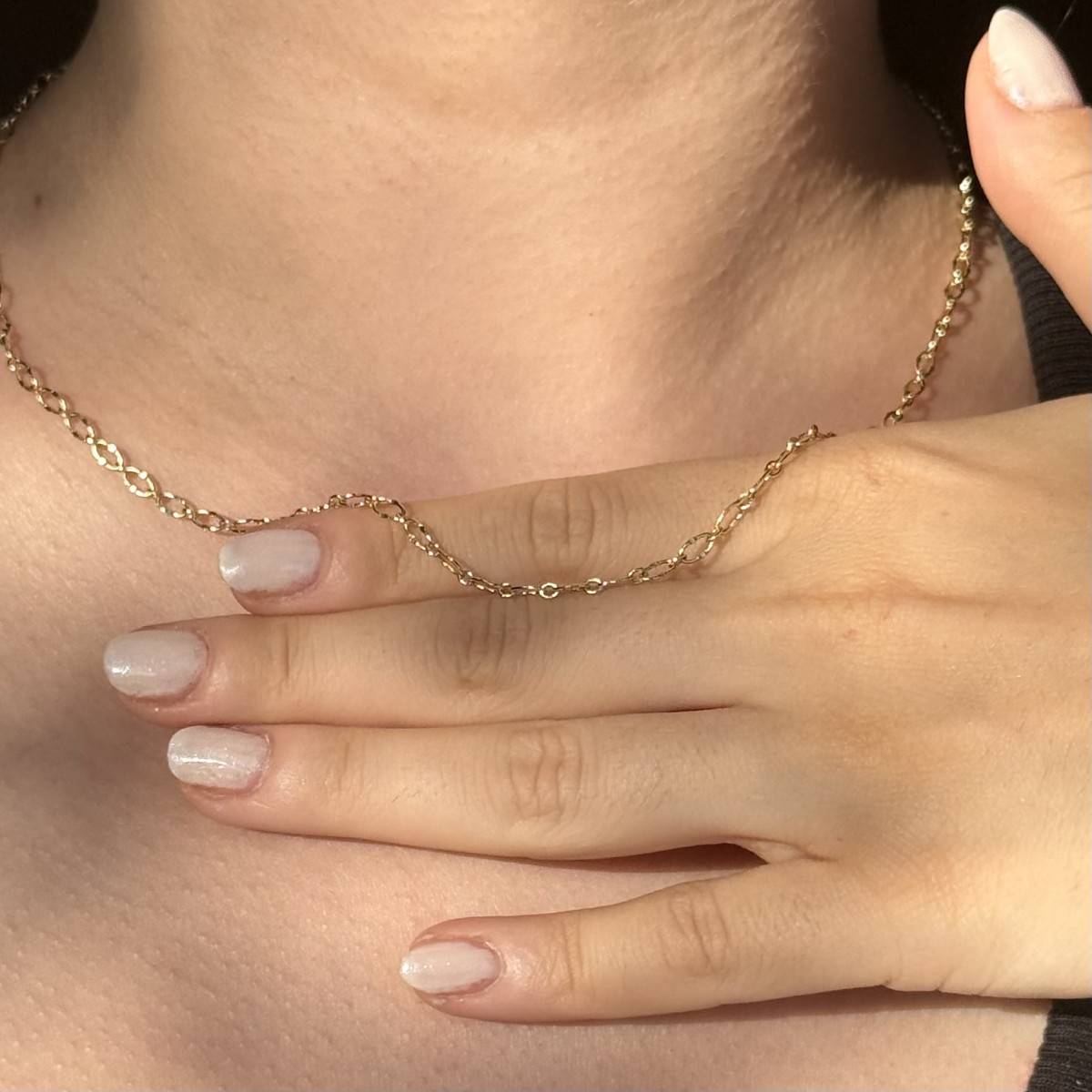 İnce ve zarif halkaların birbirine geçmesiyle oluşan, ışığı güzel yansıtan modern zincir tasarımı. Günlük kullanım için hafif ama şık bir modeldir.