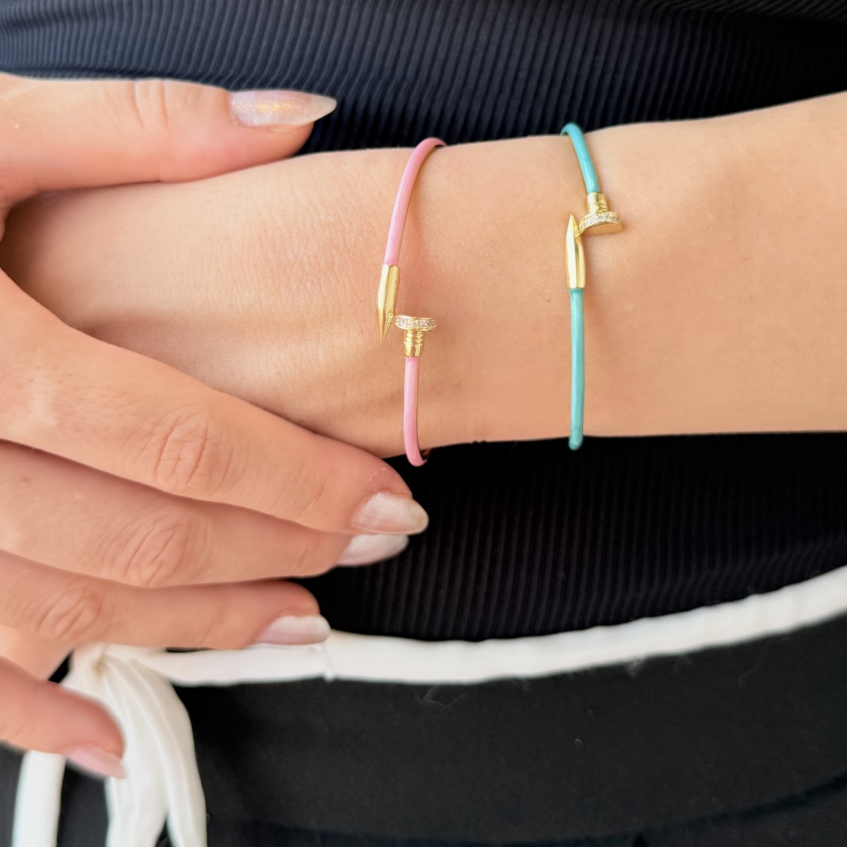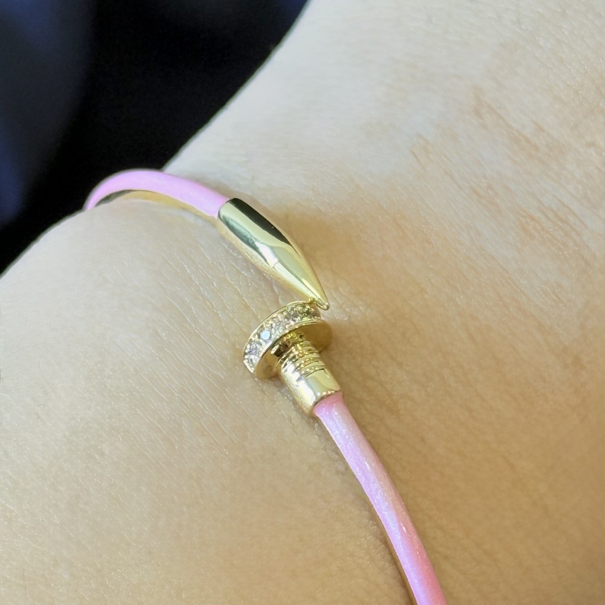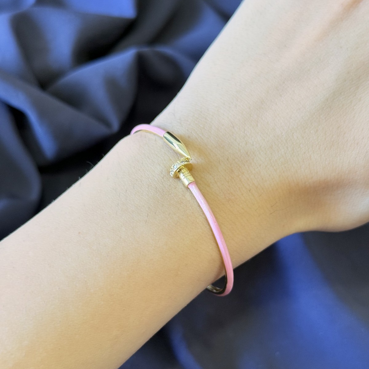 • Çivi formu + taşlı halka kilit detayı • Parlak pembe kayış • Altın tonu uç detay • Esnek yapı sayesinde bileği sıkmadan uyum sağlar