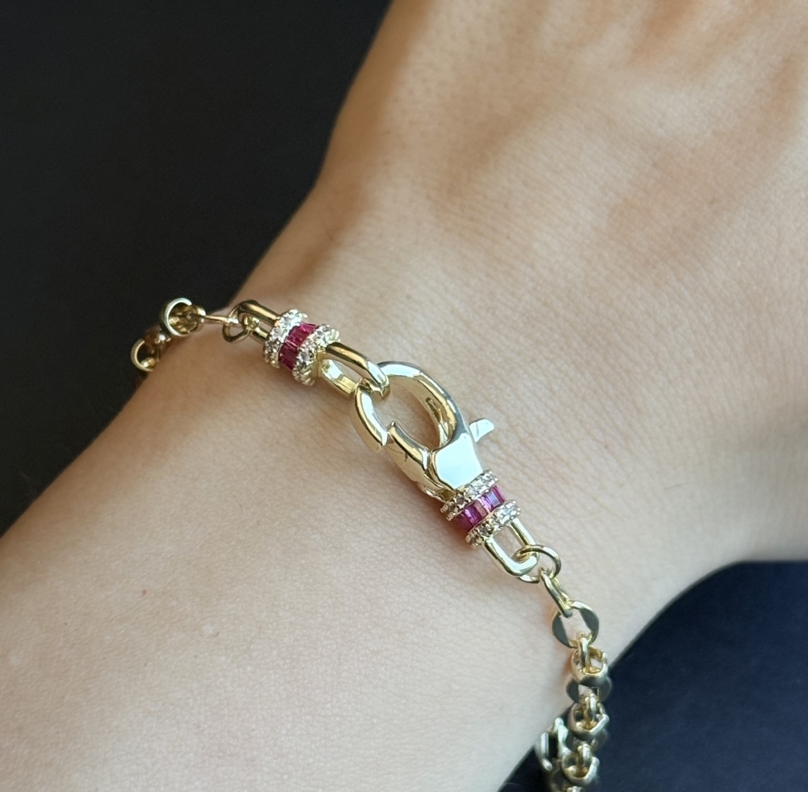 Şıklığı ve zarafeti bir arada sunan bu altın bileklik, renkli safir taşlarıyla göz kamaştırıyor. Hem günlük hem özel günlerde rahatça kullanabileceğiniz zarif bir aksesuar.