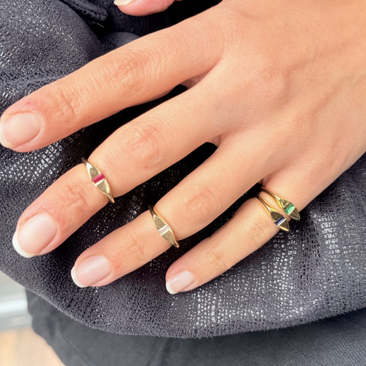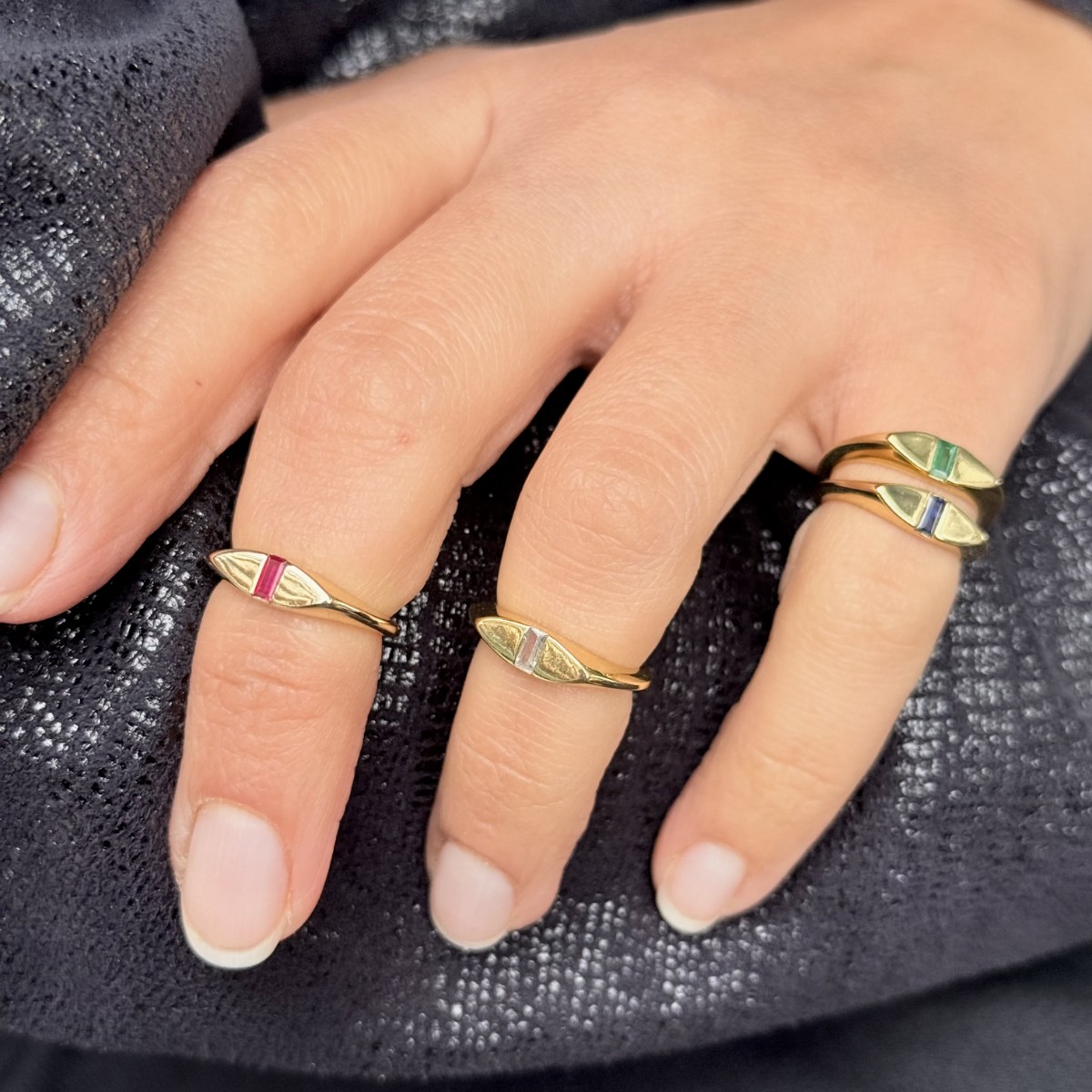 Her parmakta ayrı bir renk ışıltısı. İnce formuyla zarif, renkli taşlarıyla dikkat çekici.