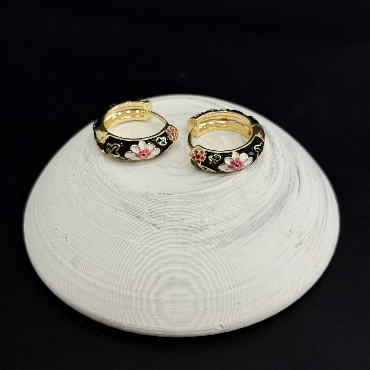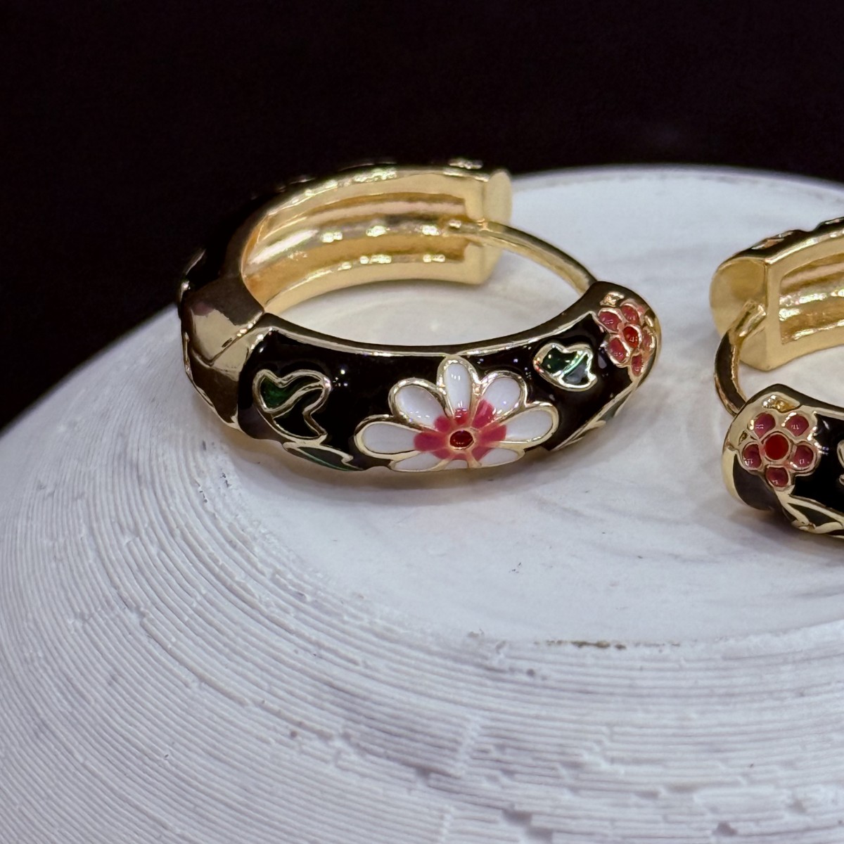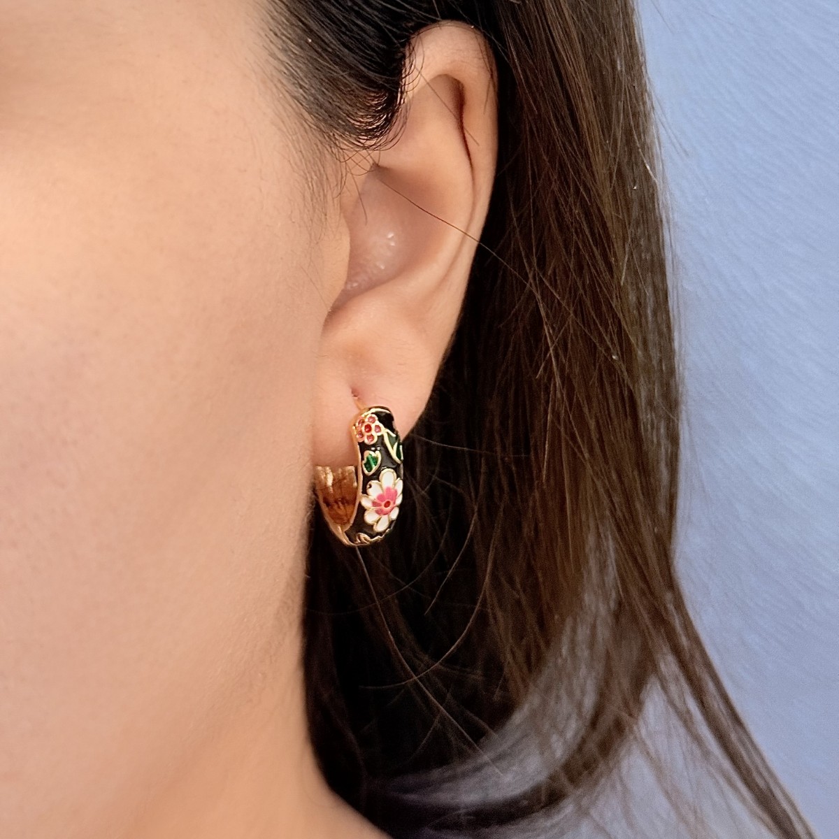 Siyah Mine zemin üzerine işlenen pembe-beyaz çiçekler ve yeşil yaprak detaylarıyla baharın zarif enerjisini yansıtır.