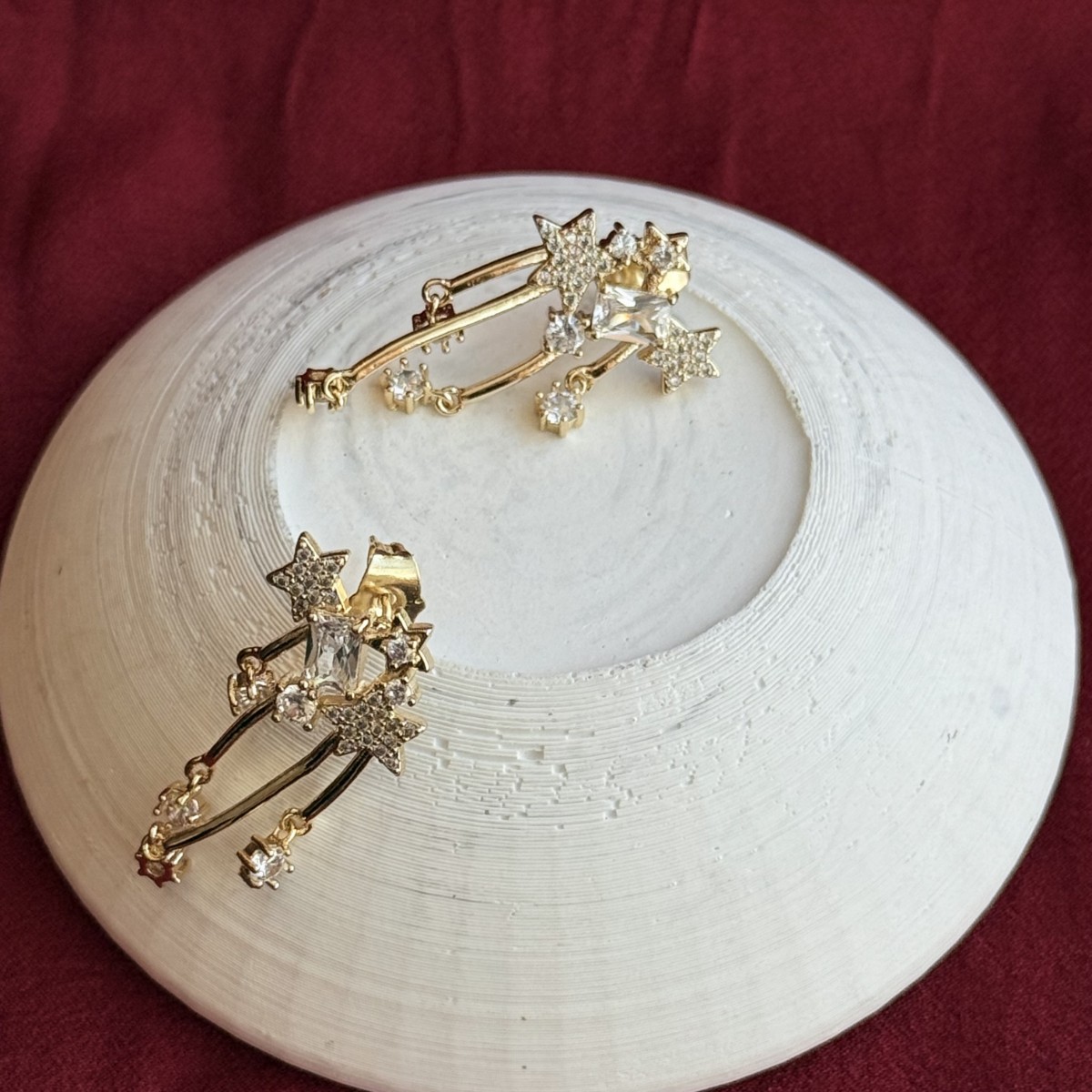Sallantılı Yıldızlı Gold Küpe: Gecenin Işıltısını Yansıtan Şıklık