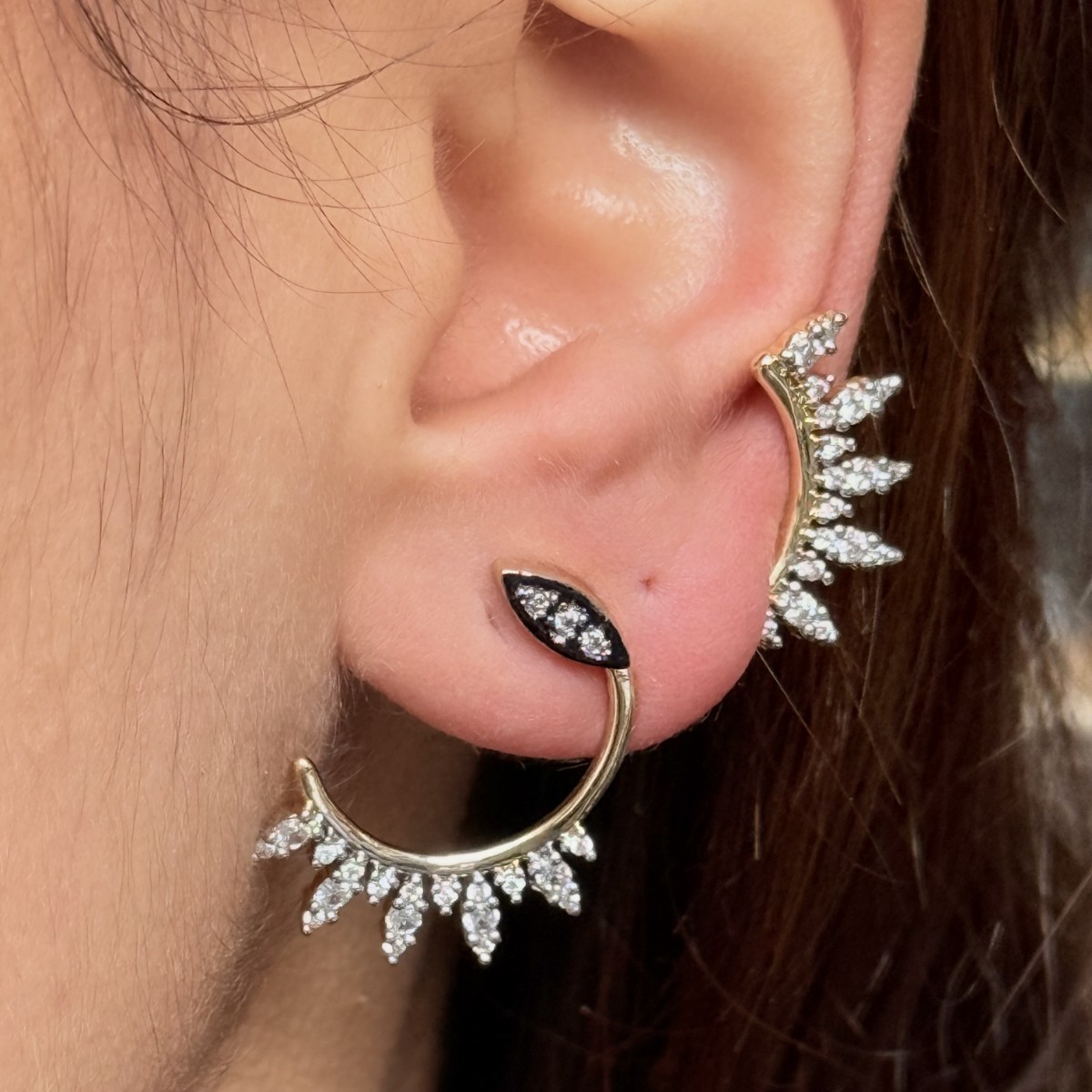 Siyah Detaylı Yarım Halo Küpe