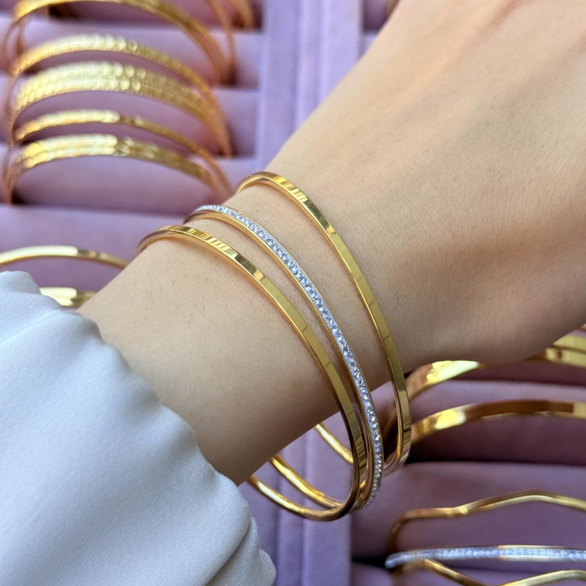Parlak yüzeyin zarif taş sıralarıyla buluştuğu şık bir tasarım. İnceliğiyle feminen bir hava katarken taşlı detaylar modern ışıltıyı öne çıkarır.