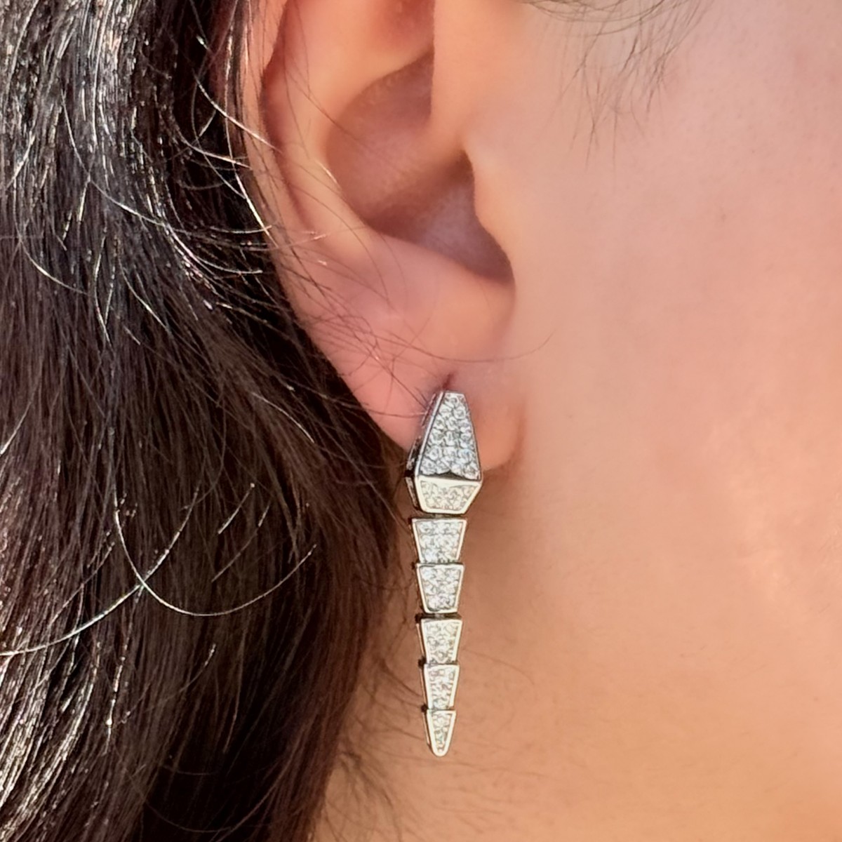 Spirale benzeyen formu hem yılanın kıvrımlı kuyruğunu hem de hareket halinde bir helikopter böceğinin kanat açısını andırır. Taş dizilimi boyunca ışık yansımaları yoğun şekilde öne çıkar, kulak hattını saran heykelsi bir görünüm oluşturur.