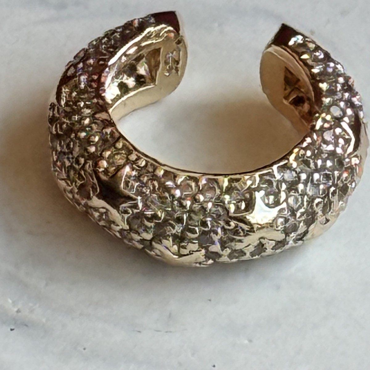 Yıldız detaylarıyla zarif bir şekilde tasarlanmış bu gold earcuff, kulağınıza modern ve ışıltılı bir dokunuş katacak. Piercing deliklerine ihtiyaç duymadan, her anınıza şıklık ve zarafet ekleyecek mükemmel bir seçenek. Hem günlük kullanım hem de özel anlar için ideal.