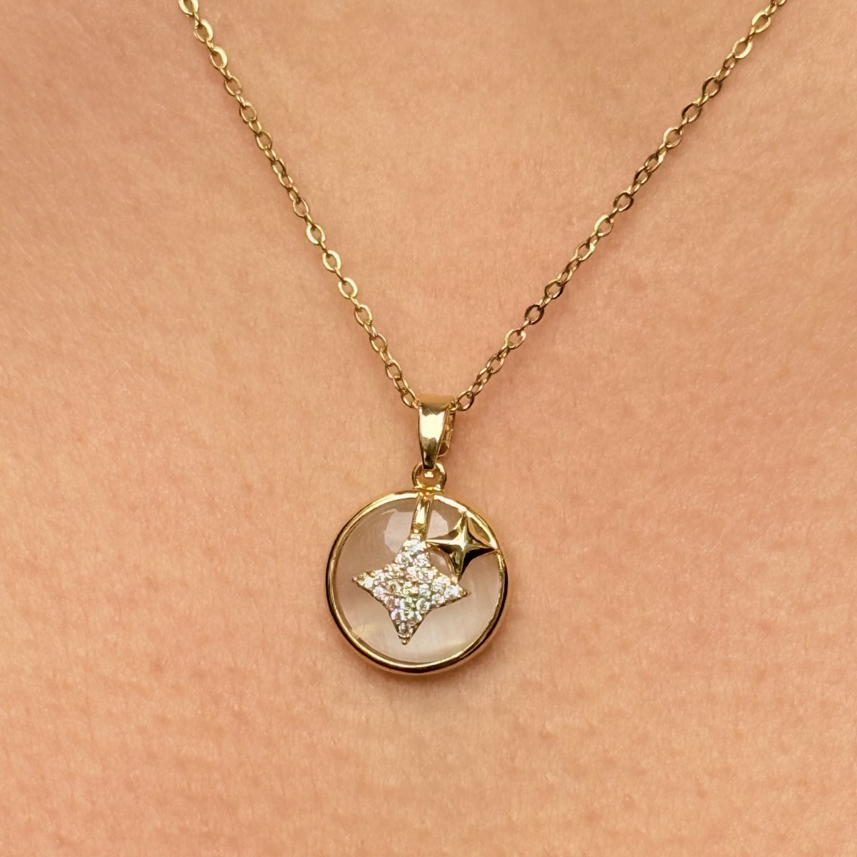 Parlak taşlı yıldız detayıyla modern bir ışıltı. Minimal ve özgün bir stil için ideal.