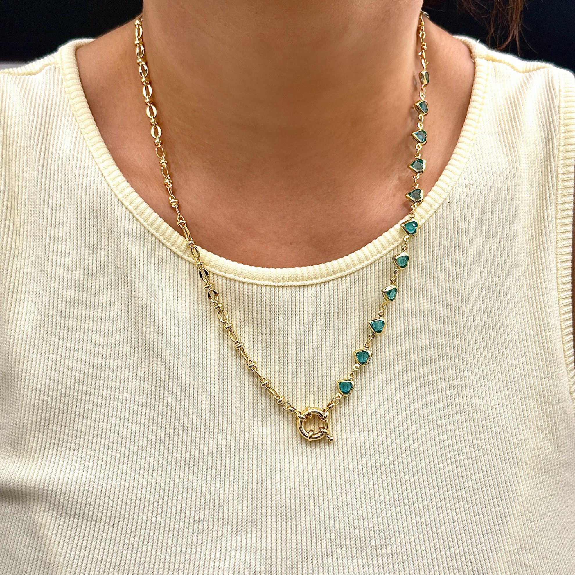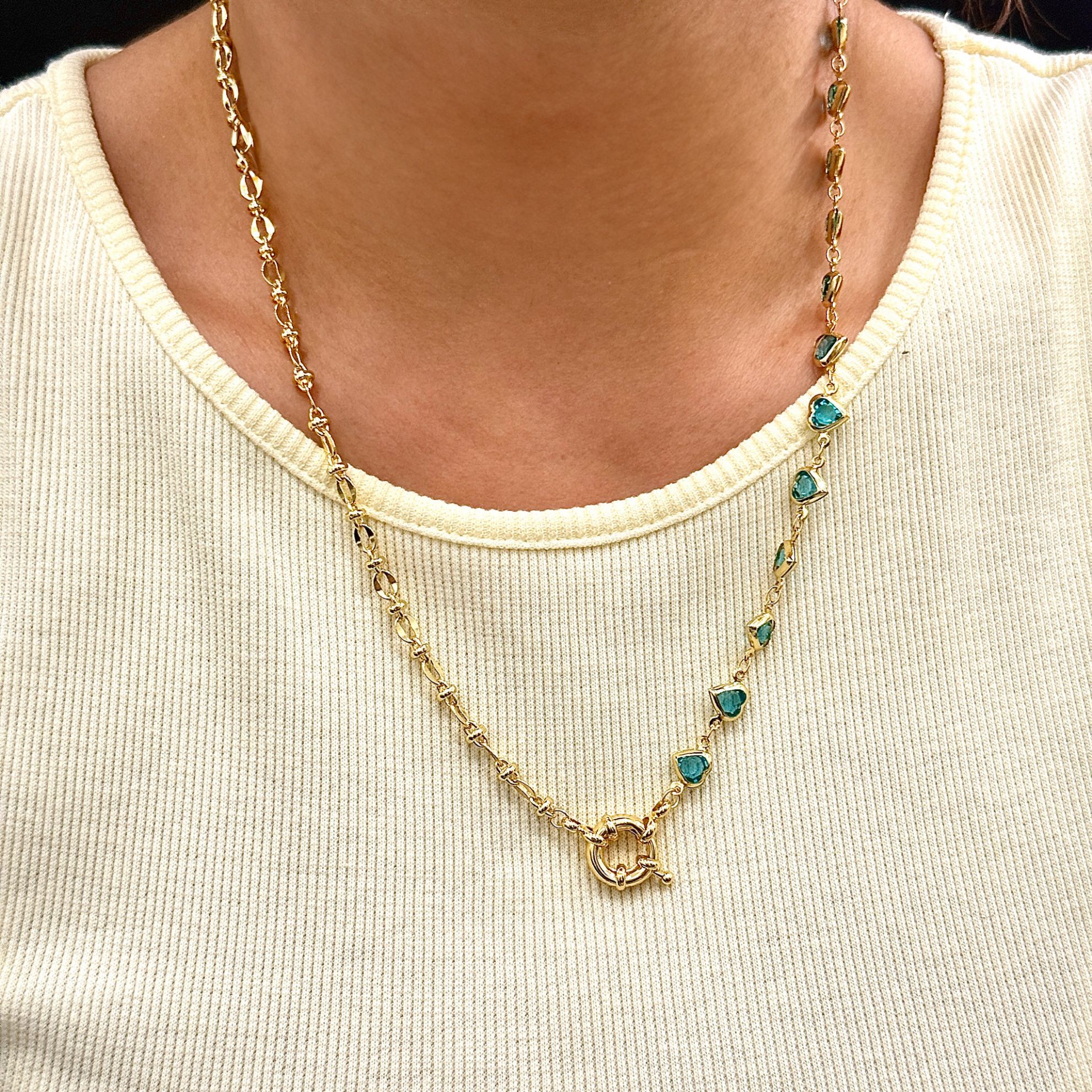 Yarısı Zincir Yarısı Mavi Kalp Kolye
