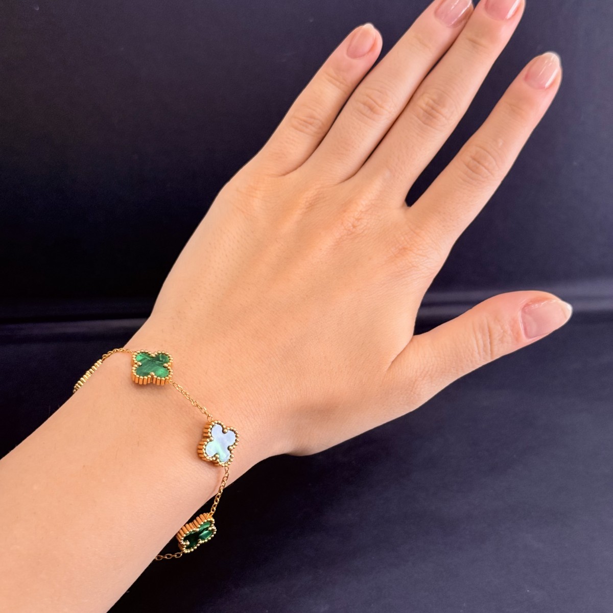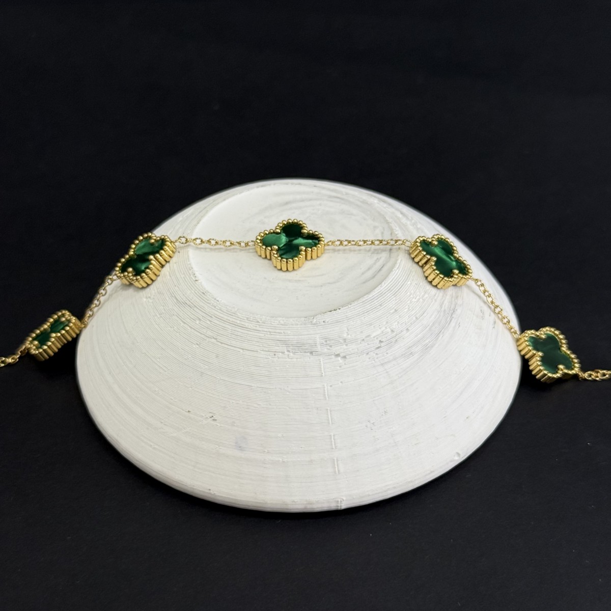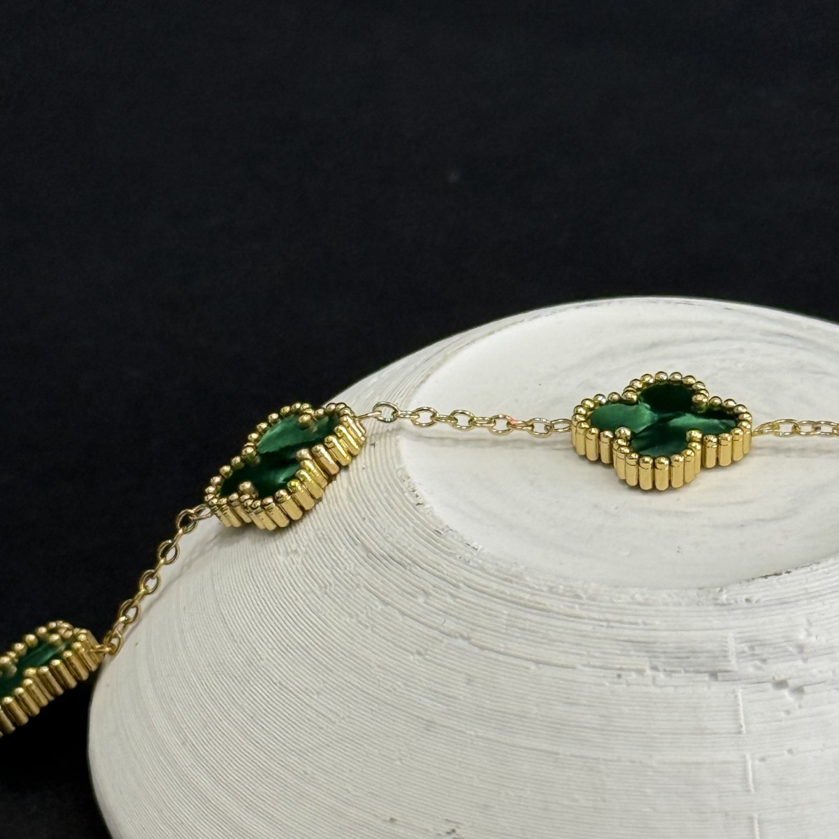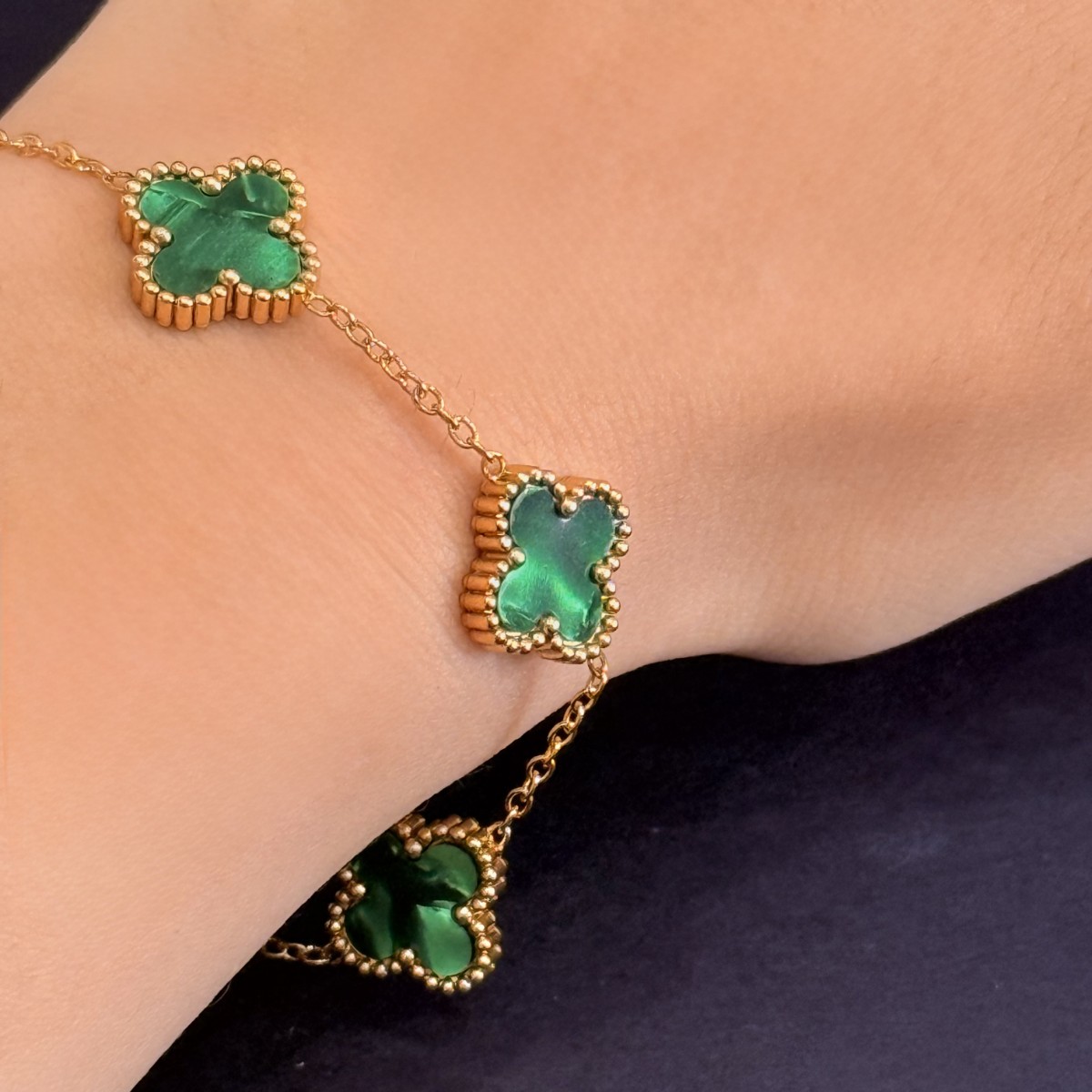 Yeşil Dört Yapraklı Taşlı Bileklik (Altın Detaylı) Çelik