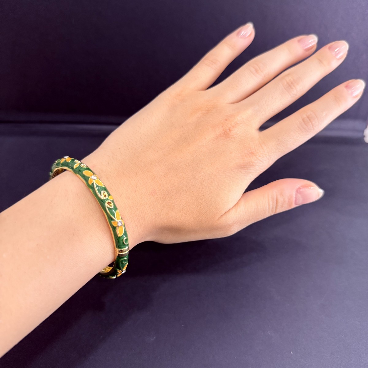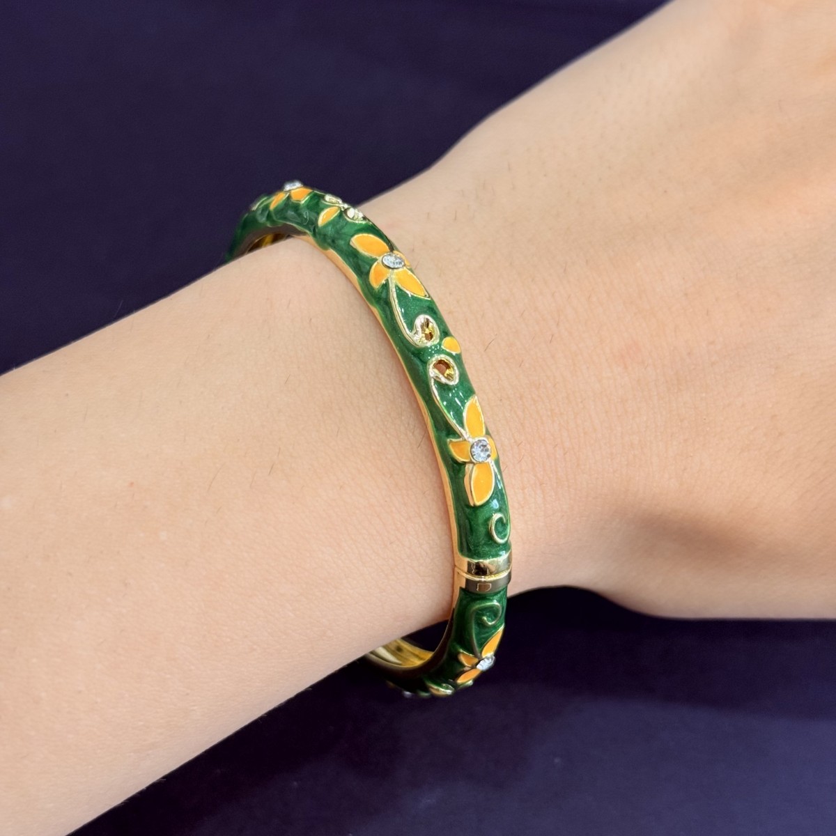 Canlı yeşil zemin üzerinde işlenmiş sarı Daisy çiçekleri ve zarif taş detaylarıyla, hem doğanın enerjisini hem de zarafeti bileğinize taşır. Mineli yüzey, parlaklığını uzun süre koruyacak şekilde özel işçilikle hazırlanmıştır.