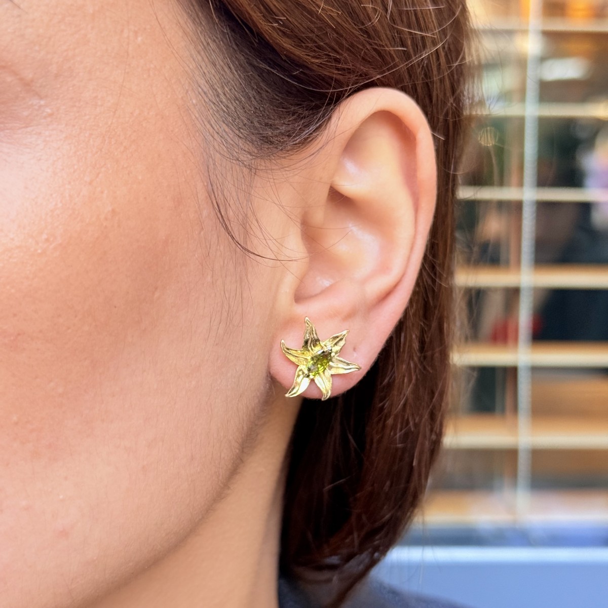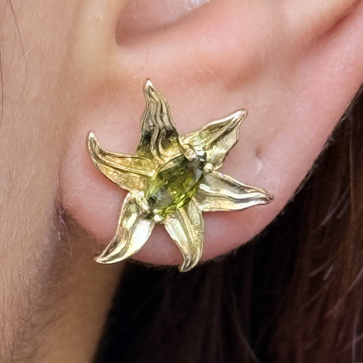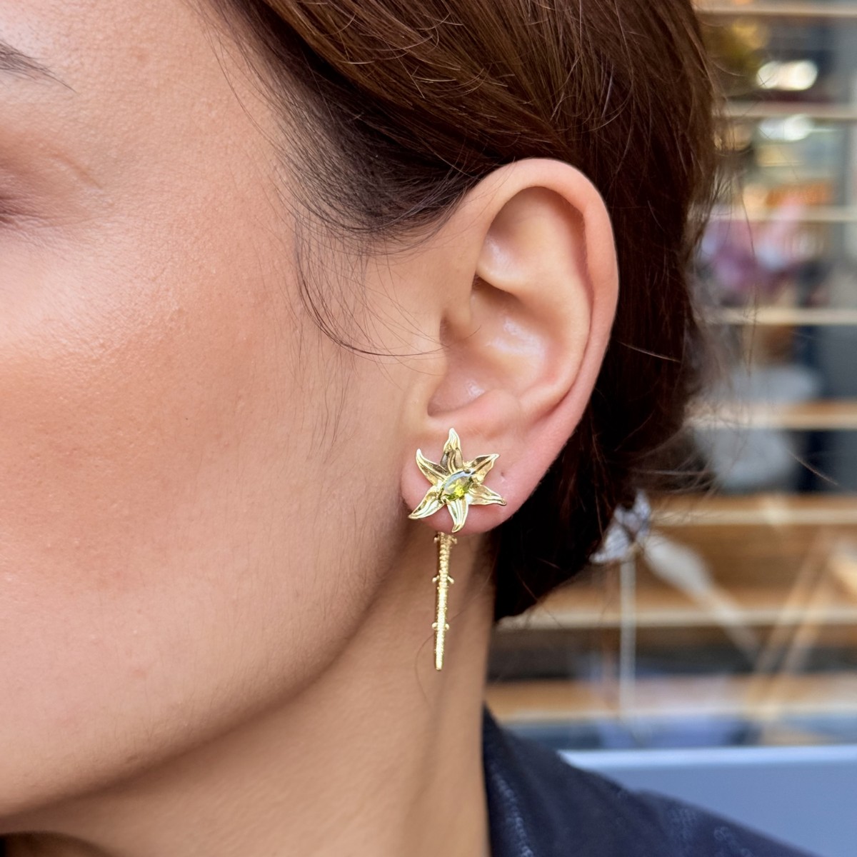 Doğadan ilham alan formu ve merkezindeki yeşil taşla dikkat çeken el işçiliği tasarım. Zarafetle doğallığın birleşimi.