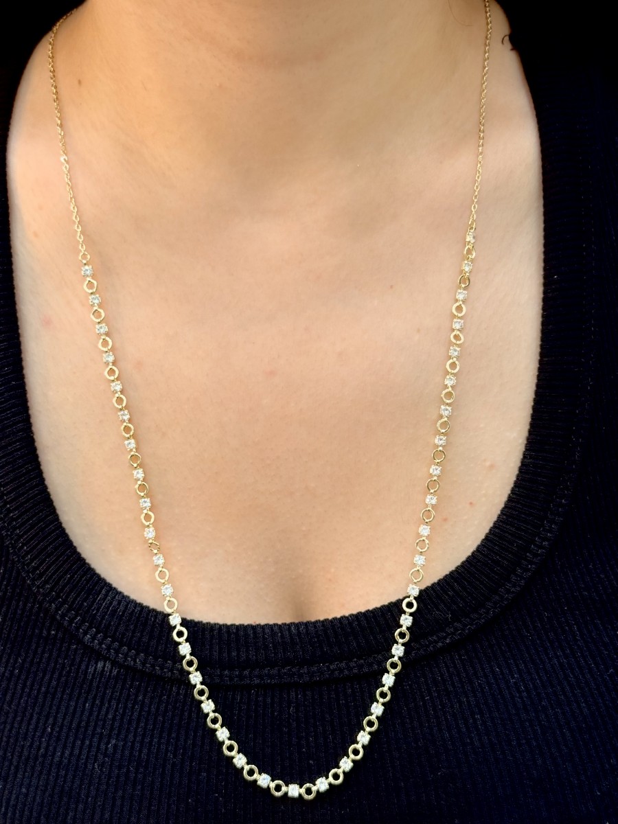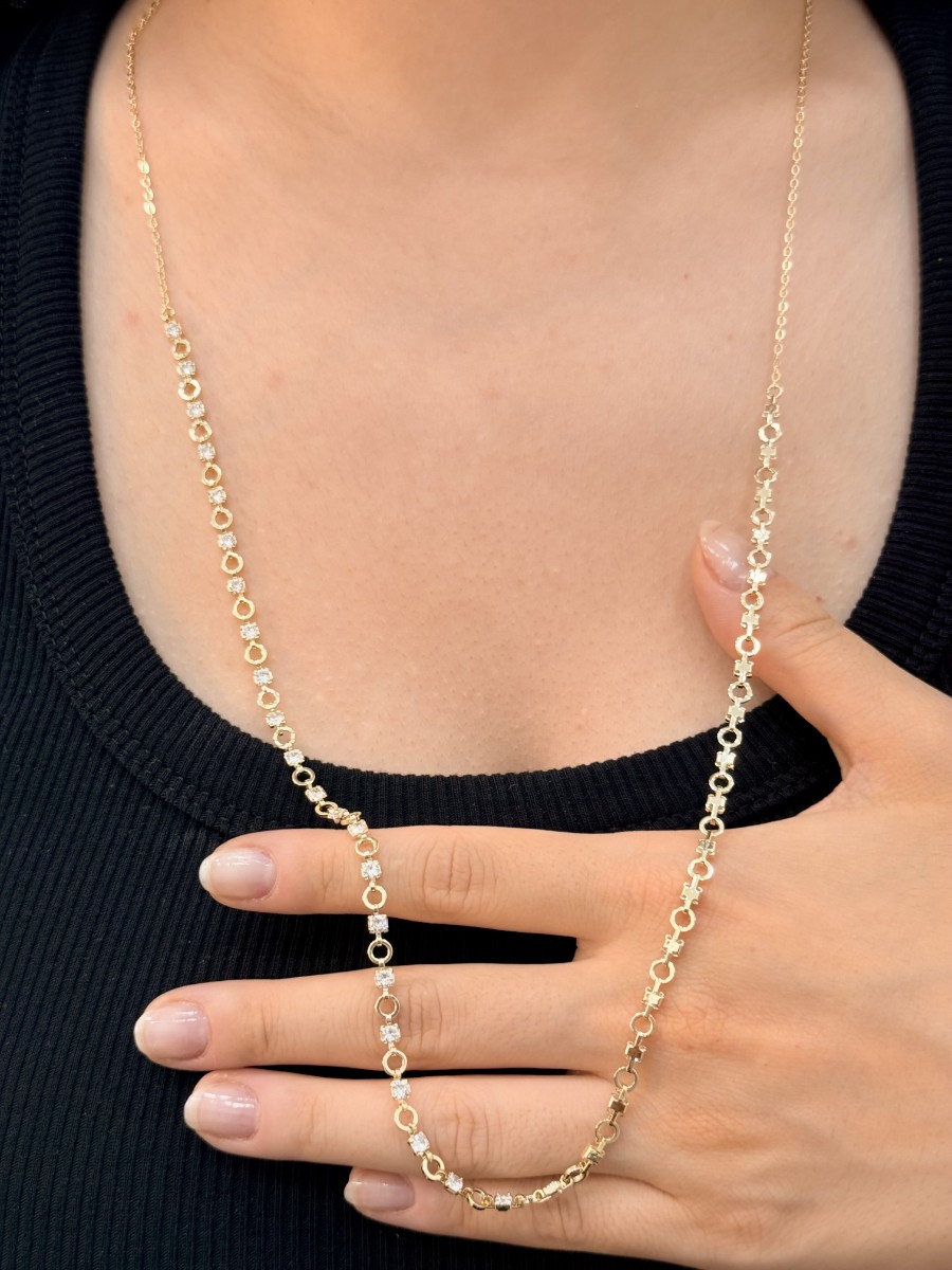 Minimal yuvarlak detaylar arasında beyaz taşlarla süslenen, her stile uyumlu klasik bir model.