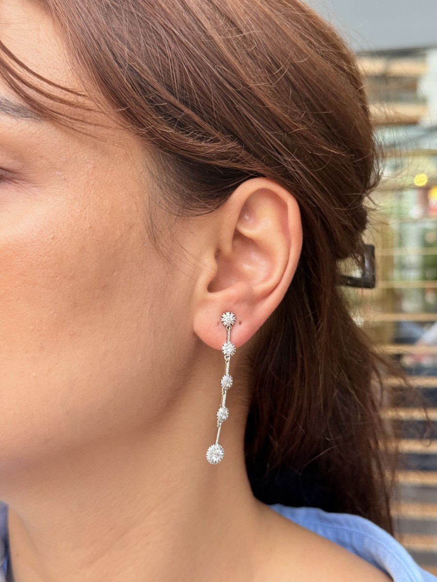 Hareket ettikçe ışığı yansıtan taşlarıyla göz alıcı bir zarafet sunan taşlı gümüş sallantı küpe, özel günlerden günlük stile kadar her anınıza ışıltı katar. Şıklığınıza modern ve zarif bir dokunuş ekleyin.