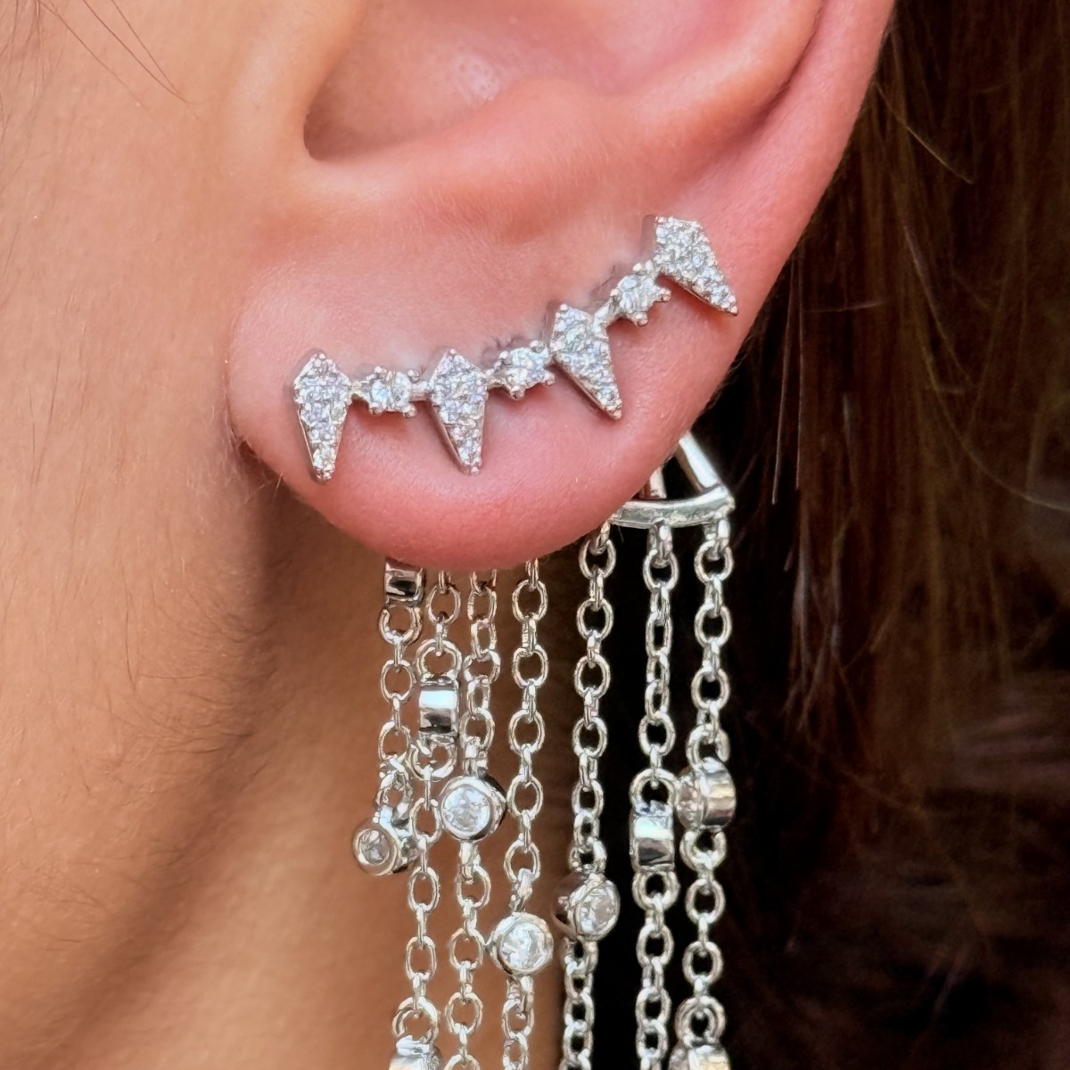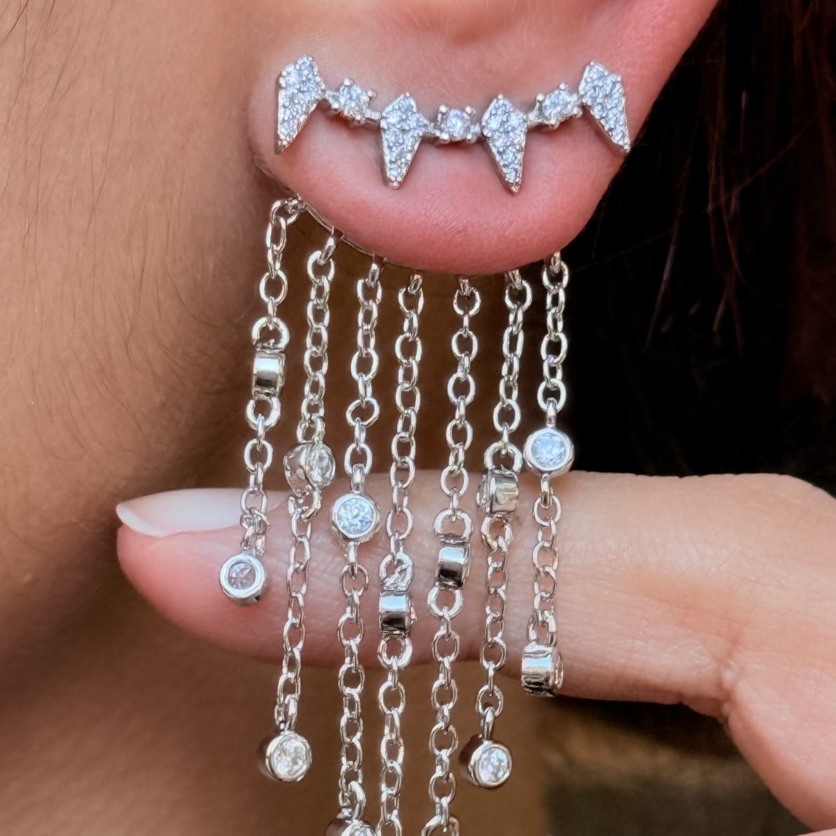 Modern zincir tasarımıyla farklı ve cesur bir hava taşıyor. Taşlı üst kısmı ışıldarken, sallanan zincirler hareket ettikçe ışıltıyı artırıyor. Gece davetleri için stilinize özgün bir dokunuş katıyor.
